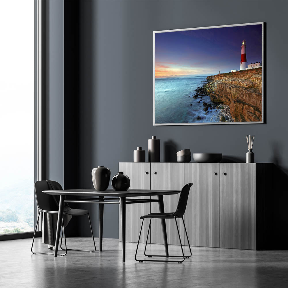 Transform your space with this stunning wall art of Portland, Oregon, capturing a breathtaking coastal lighthouse at sunset. This artwork perfectly embodies the beauty of the Pacific Northwest, where rugged cliffs meet the calming waters of the sea under a glowing sky. Ideal for home or office, this high-quality Portland cityscape art print is available in a variety of materials to suit your decor needs, from canvas to acrylic glass.