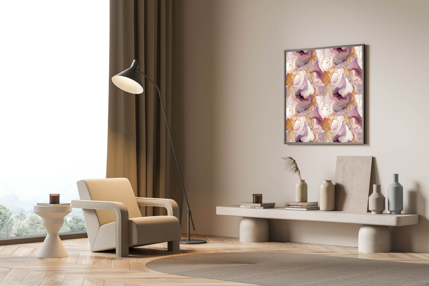 • Timeless Aesthetic: The abstract strokes and delicate color balance make it a lasting piece that complements various decor styles.