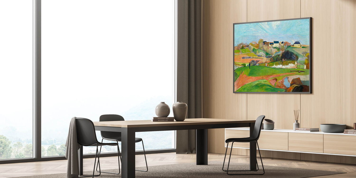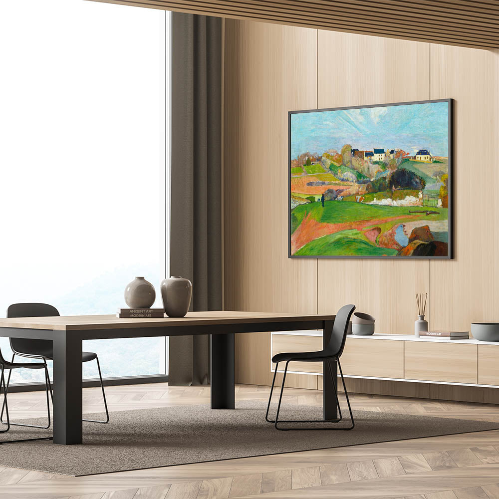 This vibrant piece by Gauguin brings the beauty and boldness of Impressionist landscapes to your home, adding a sense of joy and artistic style that’s sure to be a conversation starter.