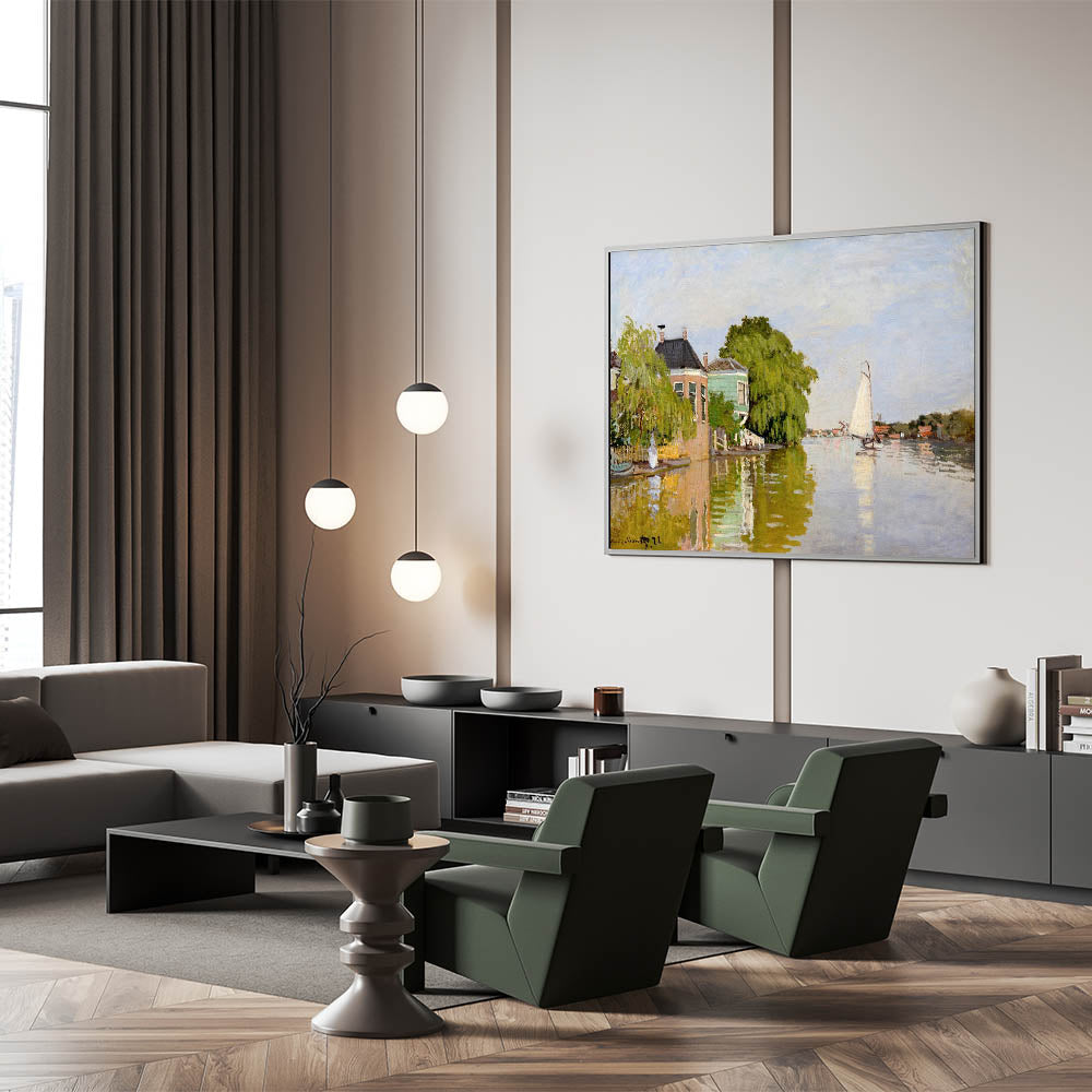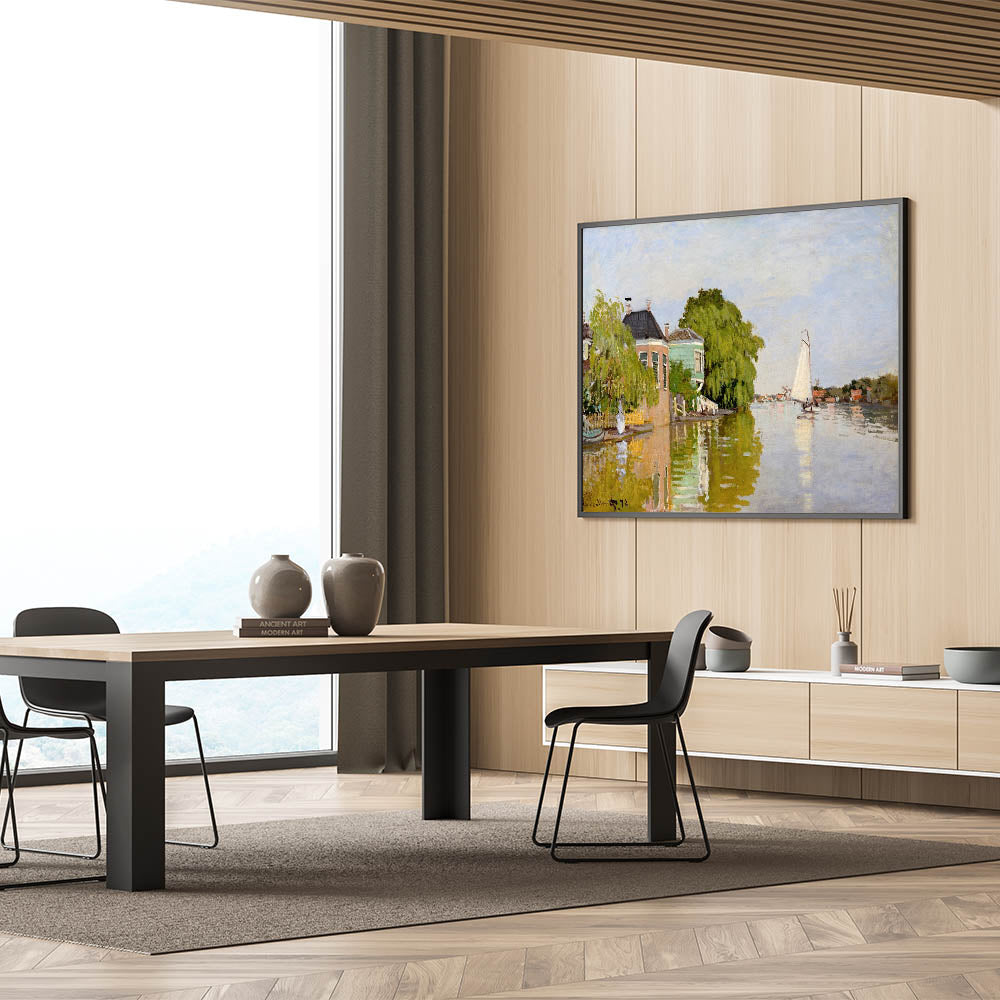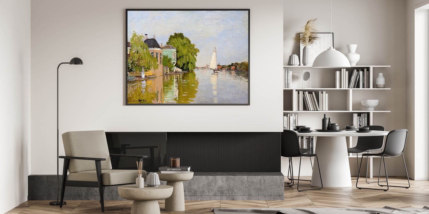 Infuse your home with the tranquil beauty of Claude Monet’s "Houses on the Achterzaan." This Impressionist masterpiece captures a peaceful riverside scene, where charming houses and a gently flowing river meet under the open sky. Monet’s skillful brushwork and subtle use of light bring a sense of calm and natural elegance to this artwork, making it a perfect addition for lovers of Impressionist landscapes and French art.
