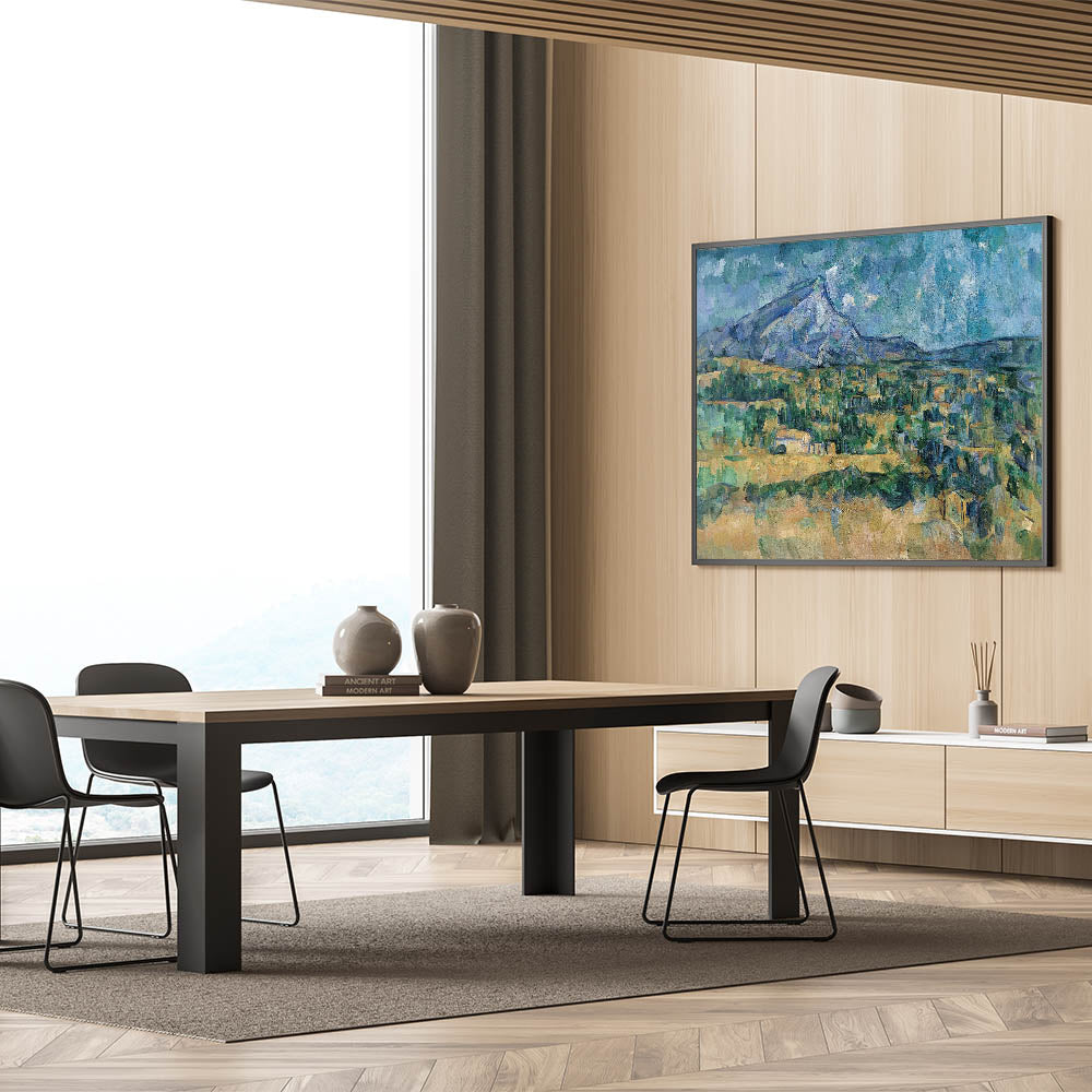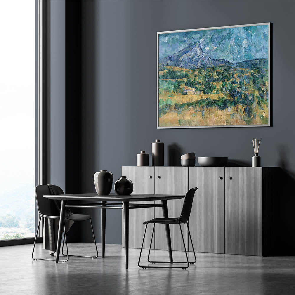 Bring the beauty of French Impressionism into your home with this stunning wall art inspired by Paul Cézanne's "Mont Sainte-Victoire." This artwork showcases Cézanne's masterful use of color and texture, capturing the serene landscape of Provence with shades of green, blue, and earthy tones. The impressionistic brushstrokes create a timeless scene that exudes tranquility and sophistication.