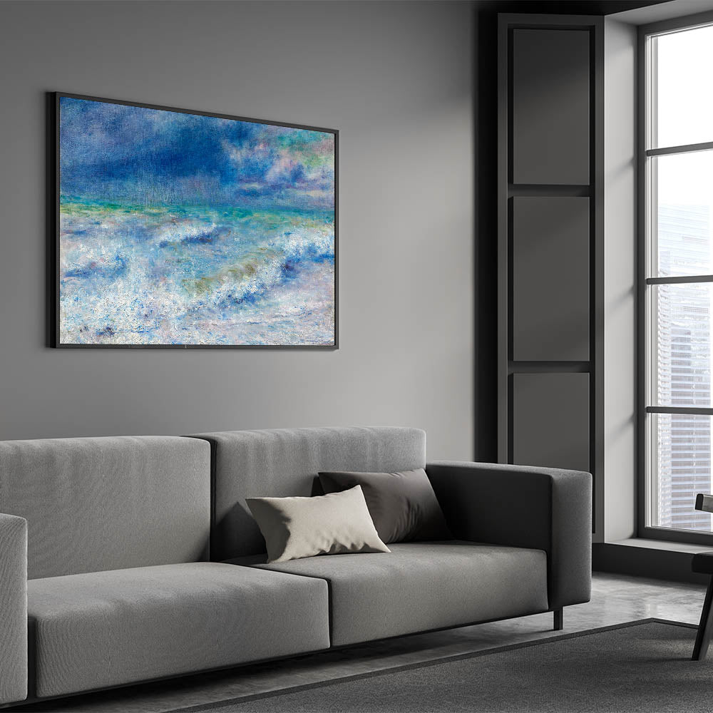 Experience the timeless beauty of Pierre-Auguste Renoir’s "Seascape" (1897), a breathtaking Impressionist portrayal of the ocean’s dynamic energy. This artwork captures the interplay of crashing waves under a vivid sky, with rich hues of blue, teal, and white evoking the movement and majesty of the sea. Renoir’s signature brushstrokes lend a sense of life and motion to the scene, making it a standout piece for any art collection.