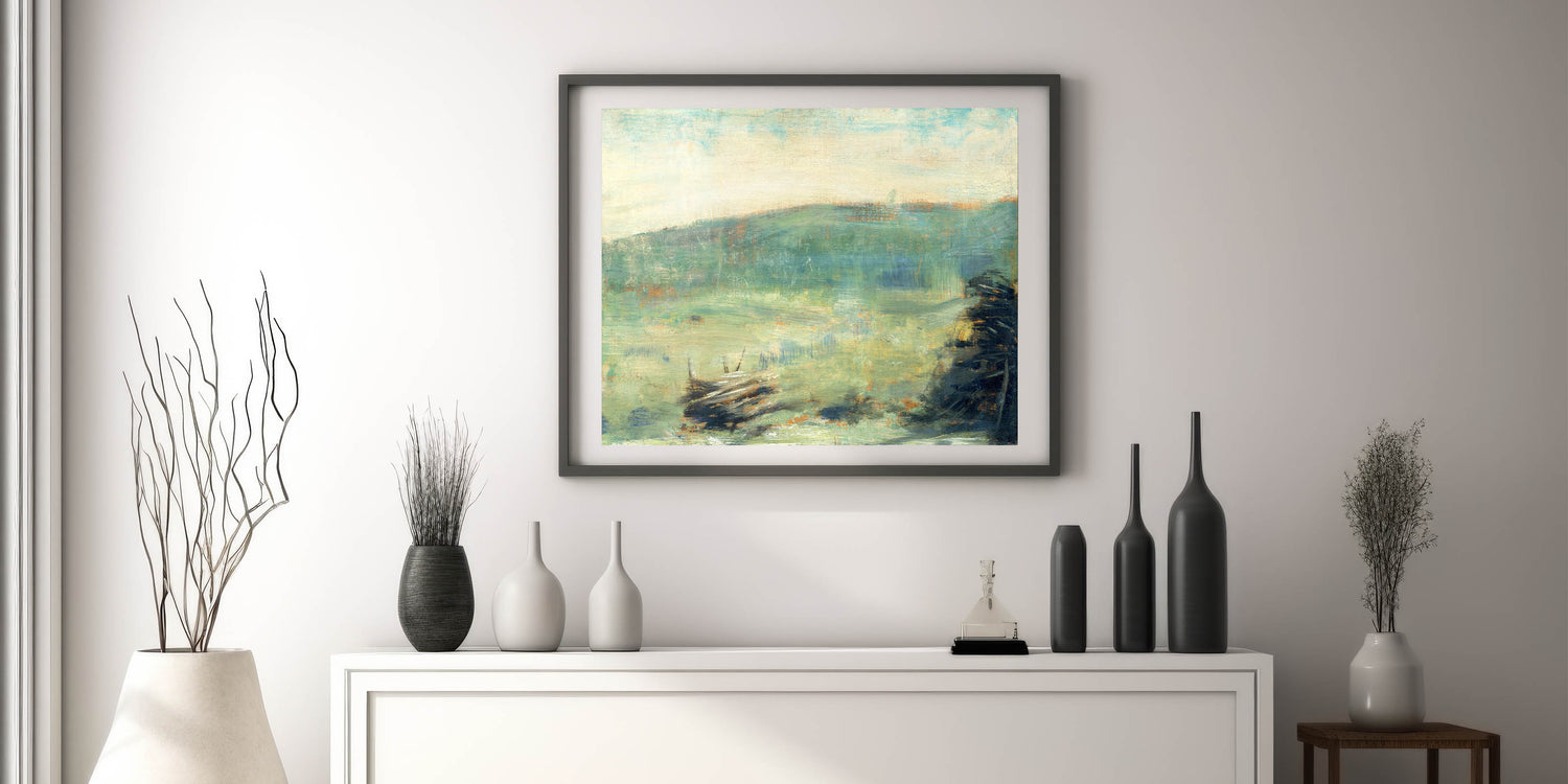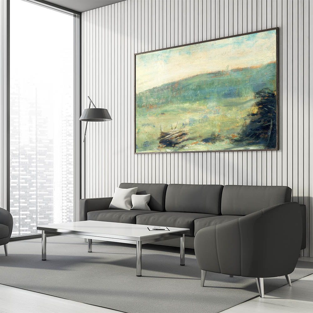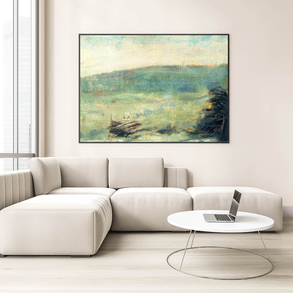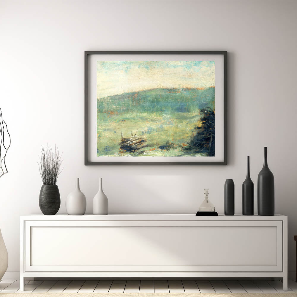 Add a touch of gentle elegance to your space with Georges Seurat's "Landscape at Saint-Ouen," a minimalist Impressionist landscape that evokes the peaceful beauty of nature. Seurat’s soft, layered brushstrokes and muted color palette create a dreamy atmosphere, capturing an open, expansive field under a tranquil sky. This piece is perfect for those who appreciate subtle landscapes that radiate calm and sophistication.