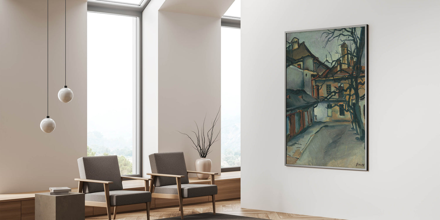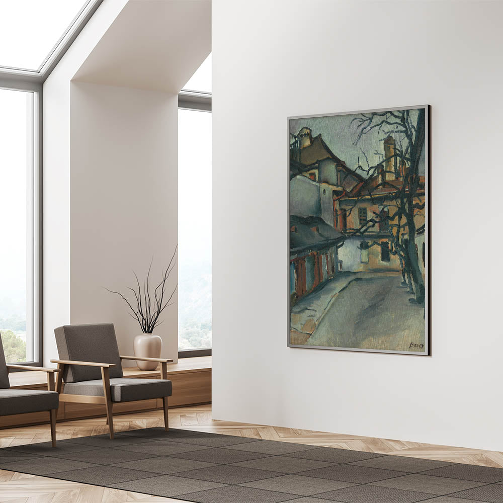 Bring a touch of historic charm to your space with the "Old Košice" Modern Wall Art. Inspired by Konštantín Bauer’s evocative depiction of Old Košice in 1929, this artwork captures the quiet streets and architecture of a bygone era. The muted tones and expressive brushwork create a moody yet timeless atmosphere, perfect for modern design enthusiasts who appreciate historical landscapes.