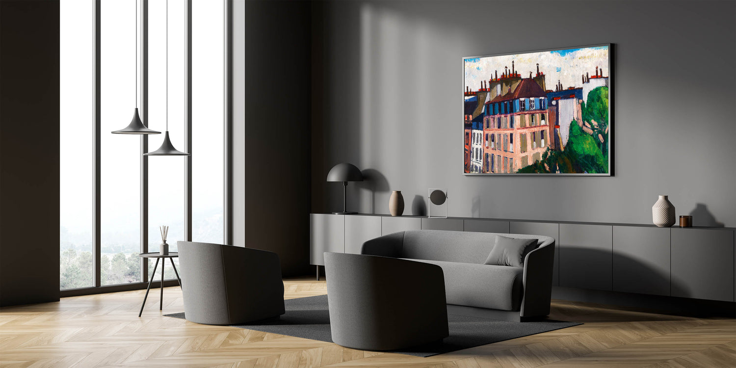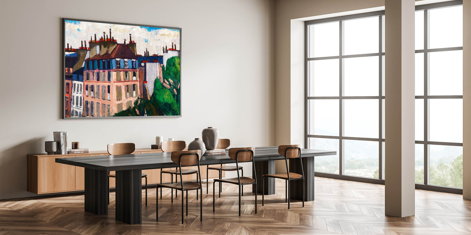 "Rooftops, Paris" offers a perfect blend of urban beauty and artistic elegance, making it a standout addition to any modern art collection. Let this piece bring the romance and energy of Paris into your home.