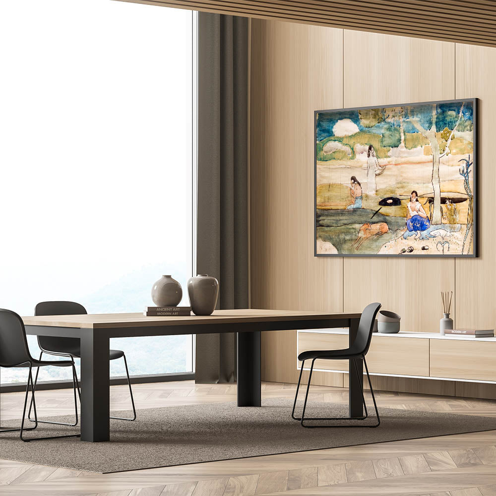 "Tahiti Study" brings the gentle beauty of island life into your home, offering a peaceful retreat into an exotic paradise. Let this unique artwork transform your walls with its quiet elegance and cultural richness.