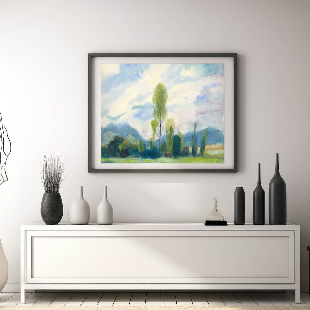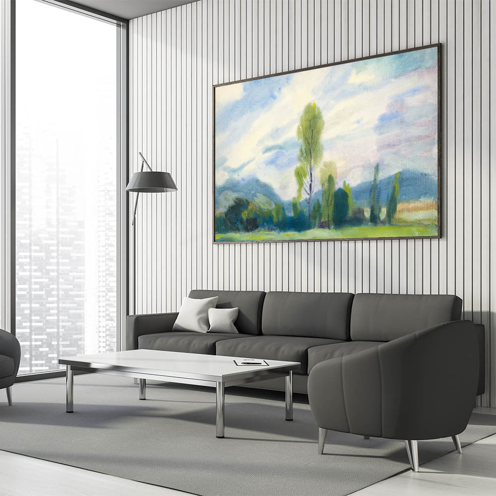 Bring the serene beauty of nature into your home with this elegant Modern Wall Art, inspired by the tranquil landscapes of the Low Tatras. The soft blend of blues and greens creates a calming atmosphere, making it perfect for minimalist modern decor. This piece captures the essence of peaceful outdoor scenery, ideal for creating a soothing ambiance in any space.