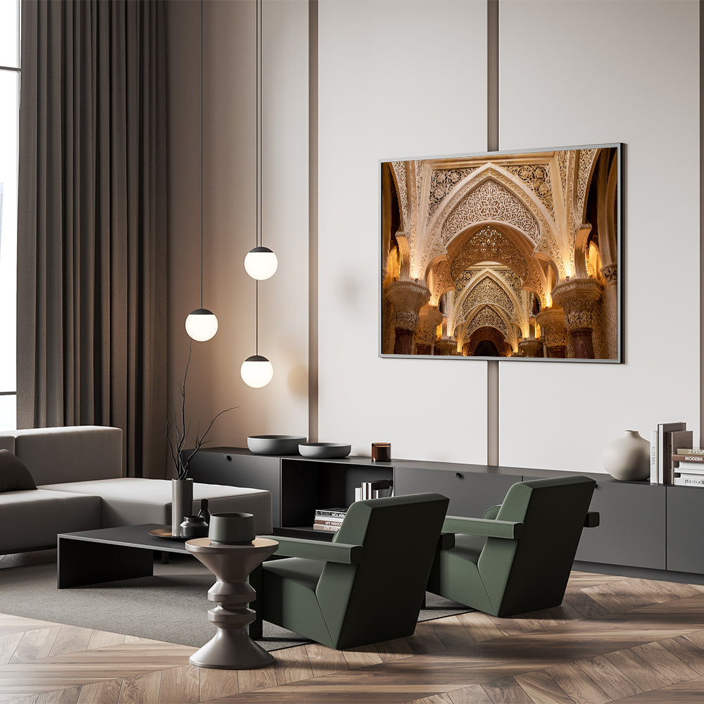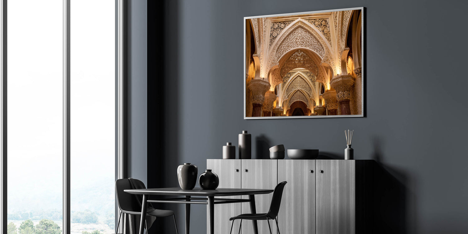 Immerse yourself in the exquisite details of historical architecture with this stunning palace archway art print. This artwork showcases the intricate patterns and craftsmanship of a grand palace's archways, offering a timeless piece that brings both elegance and sophistication to any space. Ideal for those who appreciate the beauty of fine architecture, this print makes a luxurious addition to your home or office.