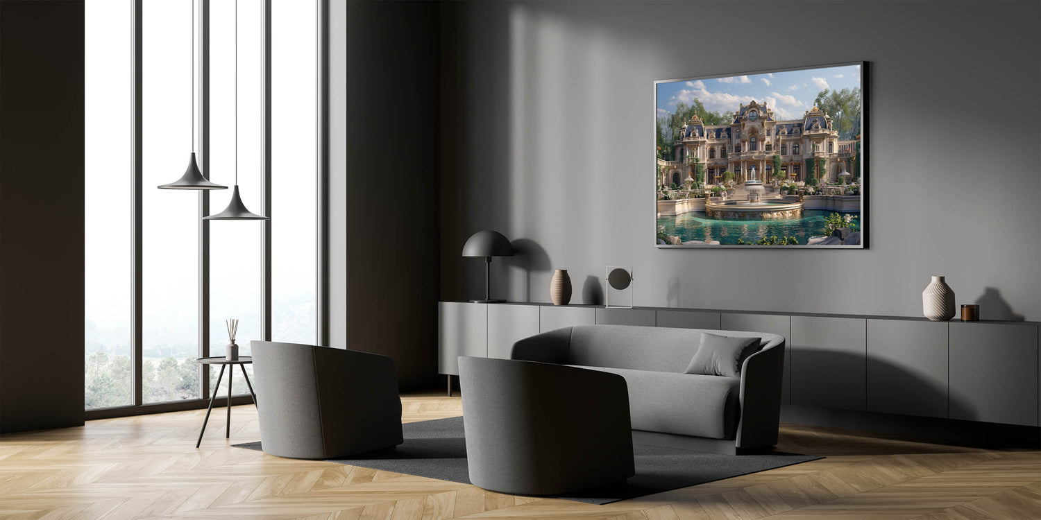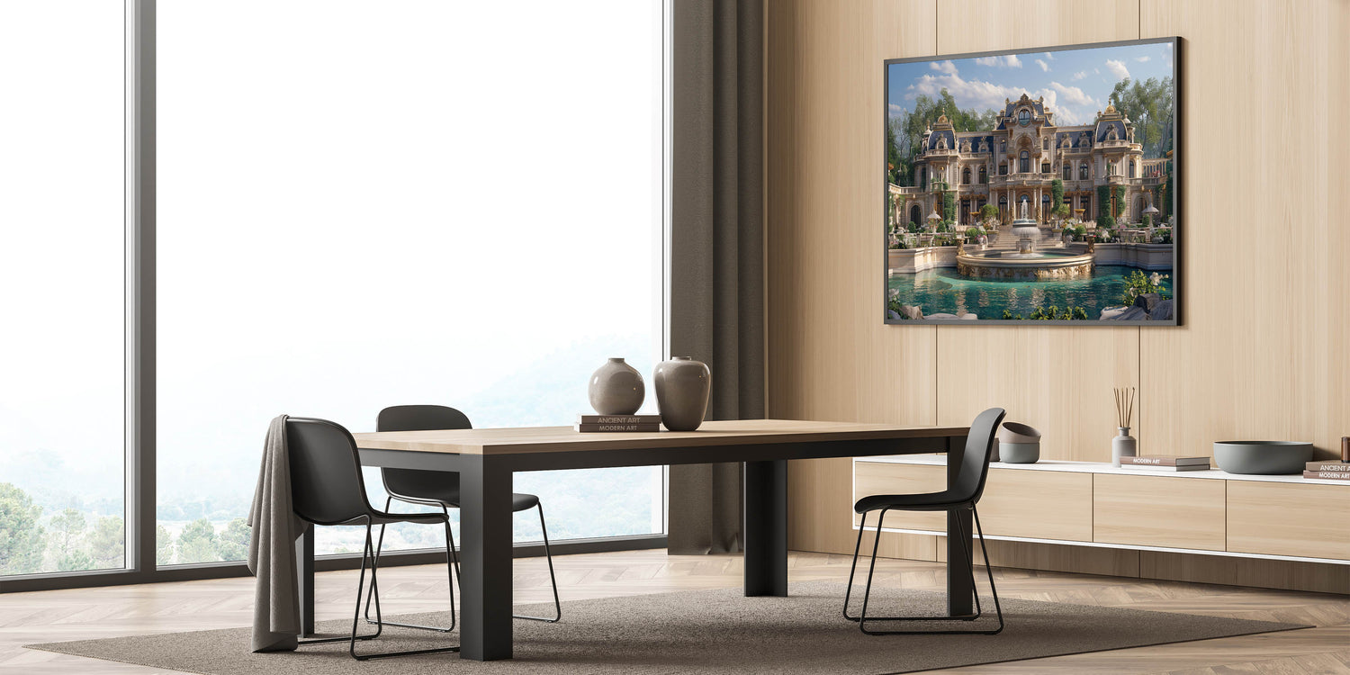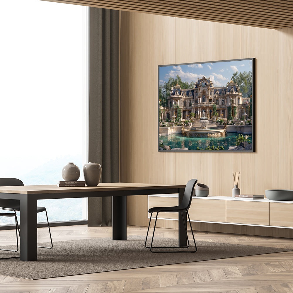 Enhance your home or office with this luxurious French chateau art print, perfect for creating a sophisticated and elegant atmosphere in any room.