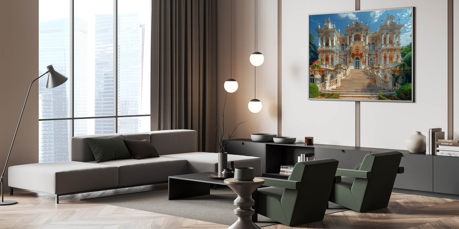 Elevate your living room, office, or study with this ornate palace decor, and let the beauty of historic architecture inspire your space. Whether framed or rolled, this artwork will become a centerpiece, drawing admiration for its exquisite detail and luxurious design.