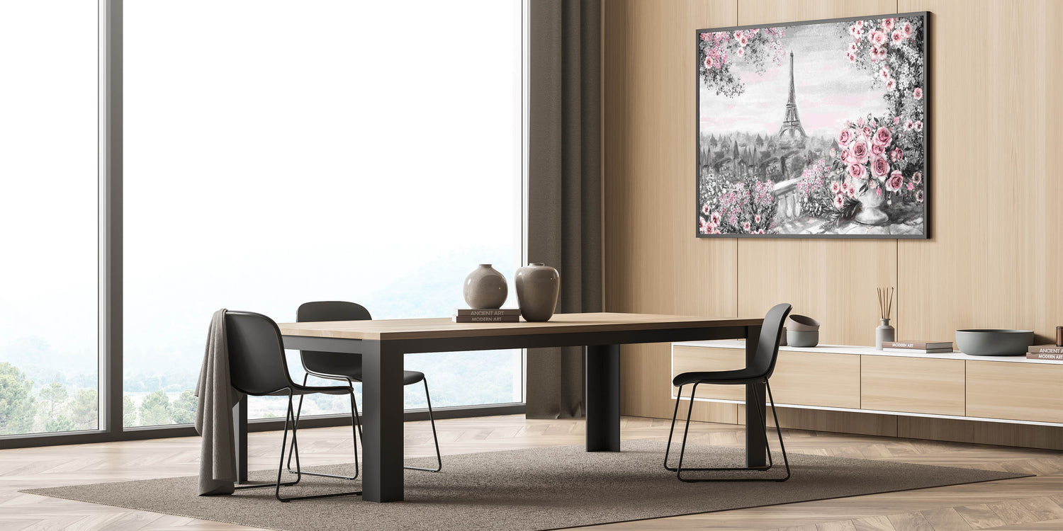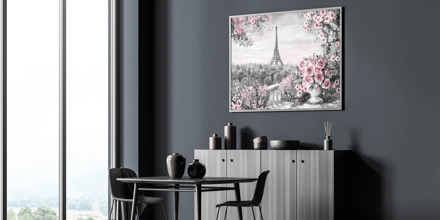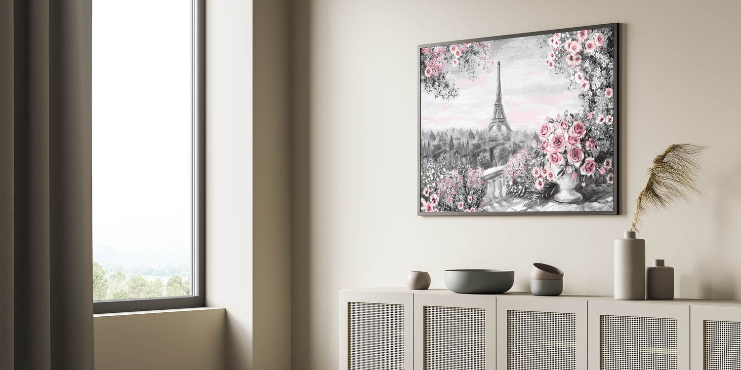 - A perfect addition for French decor for living rooms, with soft, floral touches and an iconic Parisian scene.