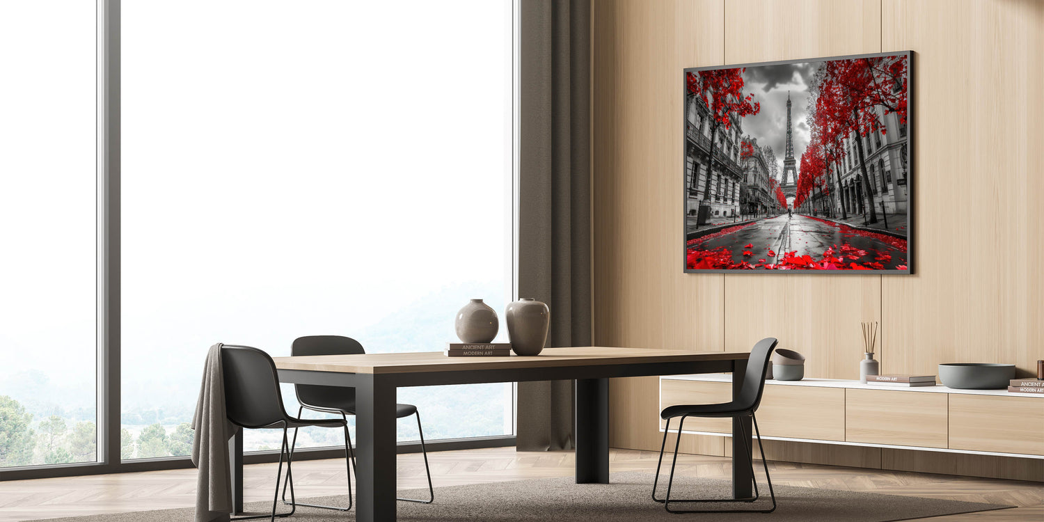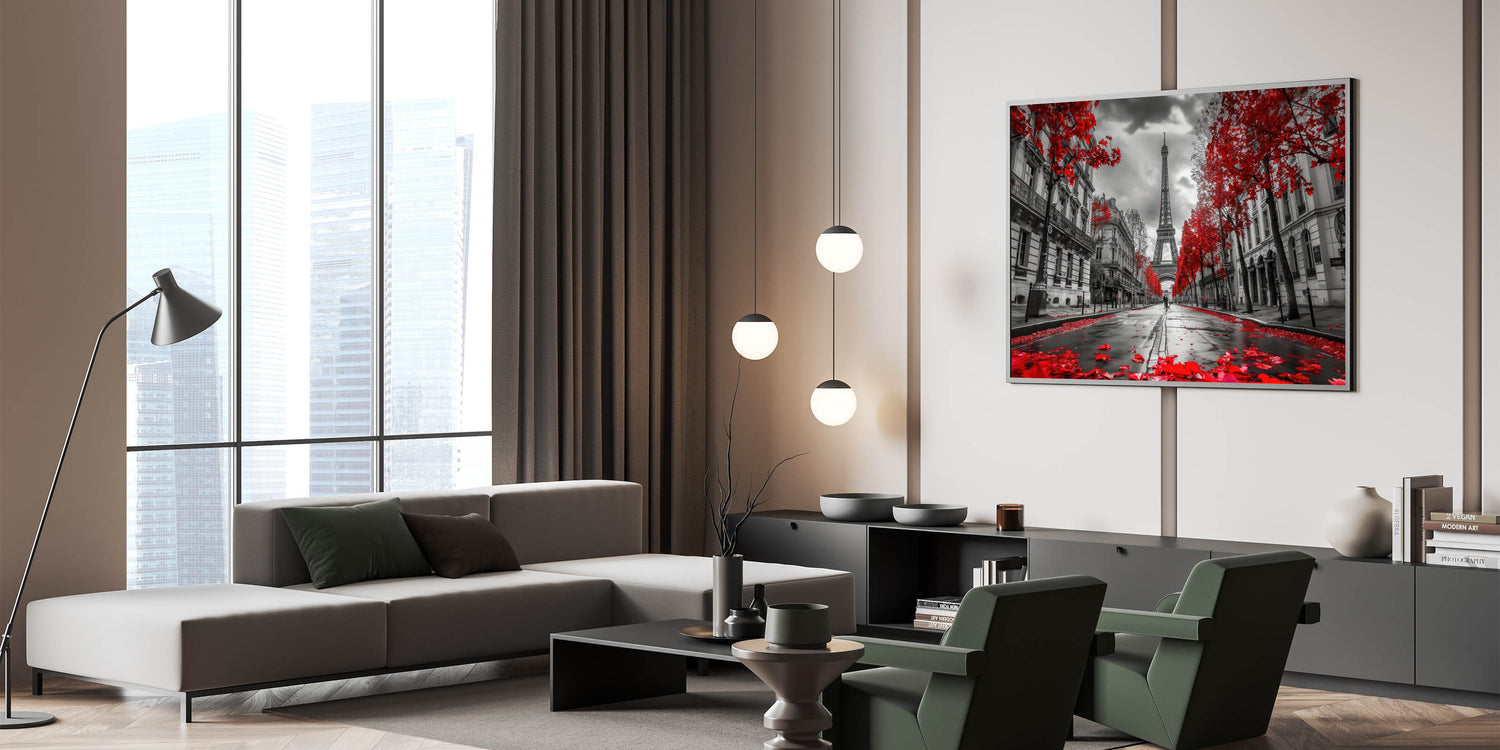 - High-quality Paris canvas print with vibrant red accents for a unique touch.