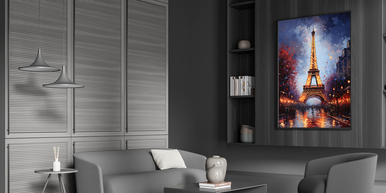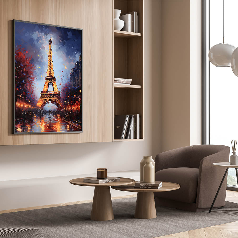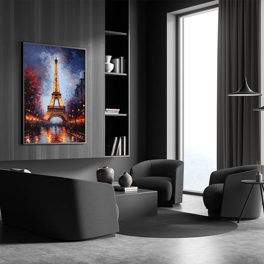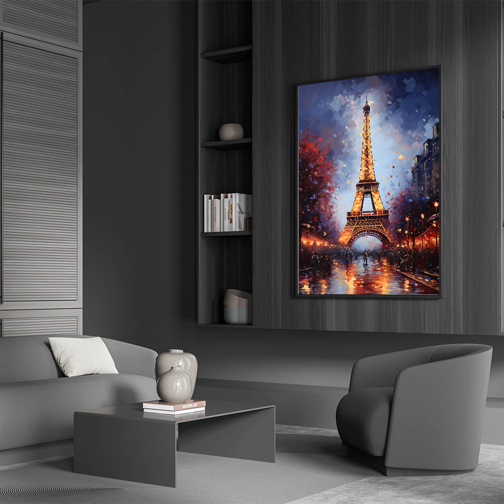 This Eiffel Tower art is ideal for adding a touch of elegance and liveliness to any living space. Its vibrant colors and iconic imagery make it a captivating piece for those looking to bring the charm of Paris into their home.