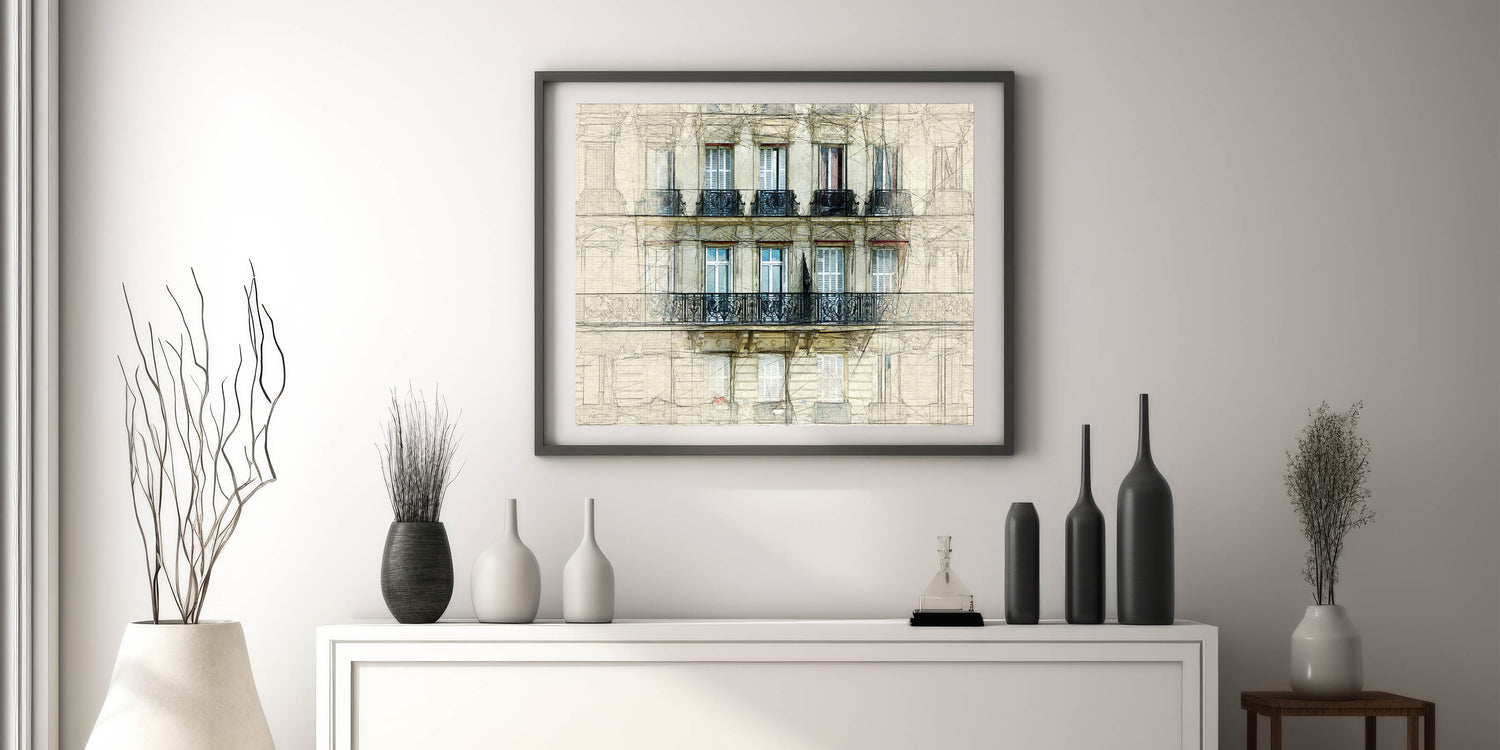 - High-quality Paris prints that showcase fine architectural details and sketch-like elements.
