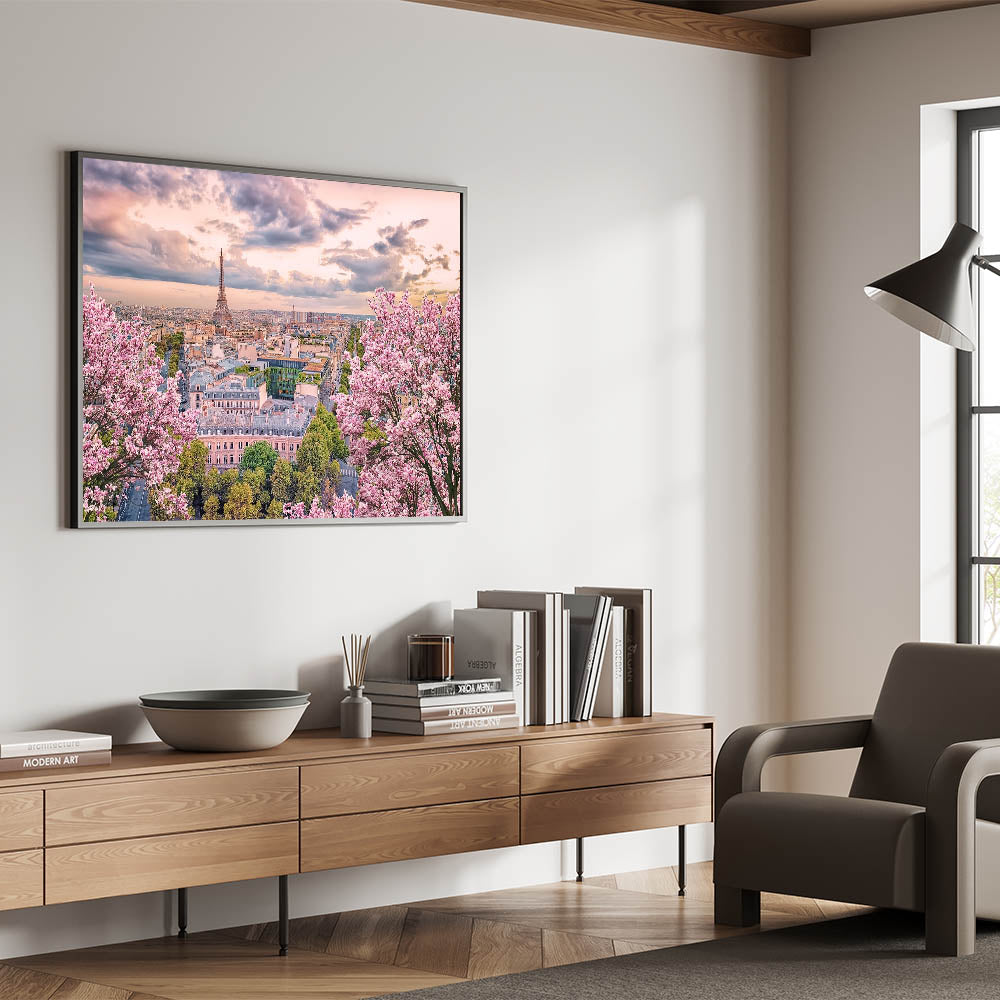 Transform your living room or bedroom with this scenic Paris photography that captures the magic of springtime in Paris. Whether you're a fan of romantic Paris art or looking for a serene French decor piece, this artwork is sure to brighten up any room.