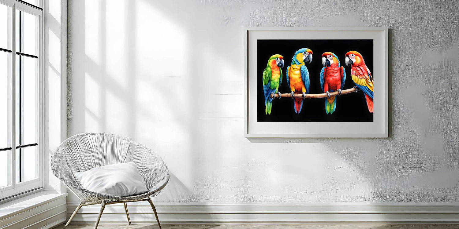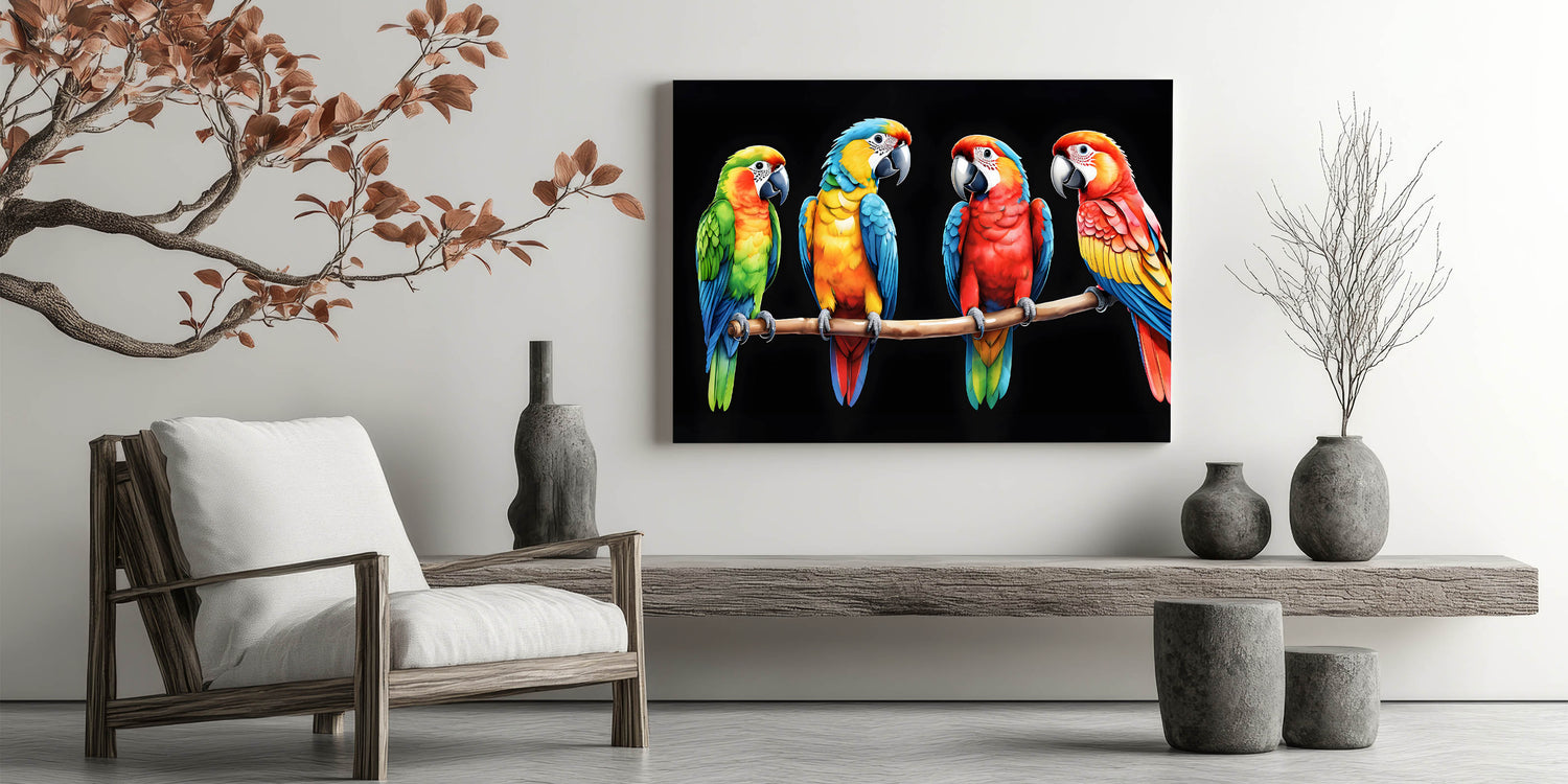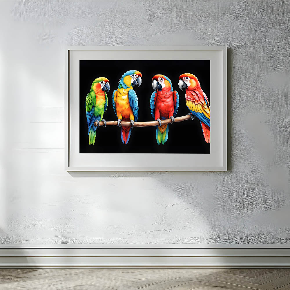 This Parrot Canvas Print is more than just a decorative piece; it’s an explosion of color and energy that breathes life into any space. Whether displayed in a living room, bedroom, or office, this artwork is sure to captivate and inspire. Add this stunning parrot quartet artwork to your collection today!