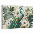 Elegant Peacock and Botanicals Wall Art - Serene Green Canvas Print