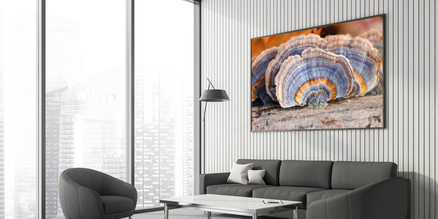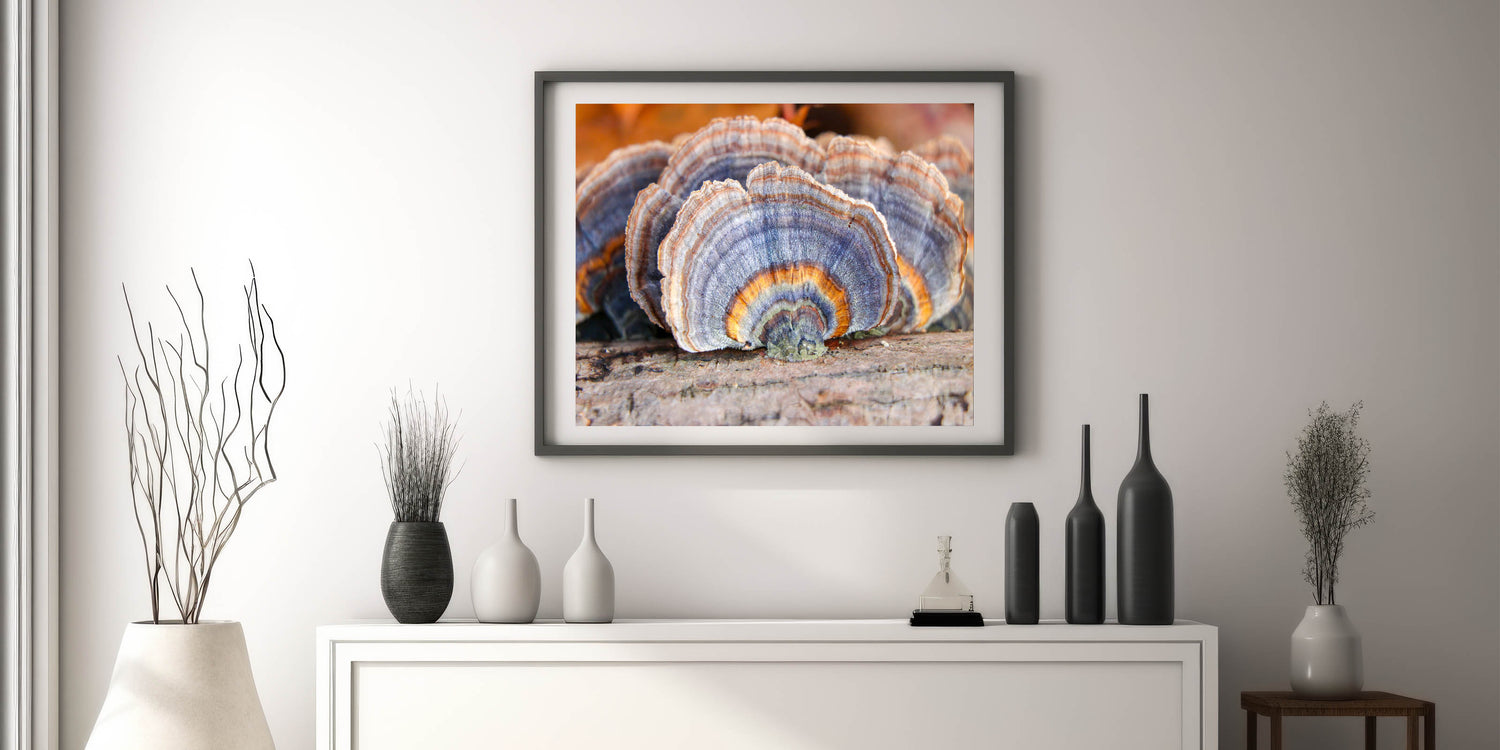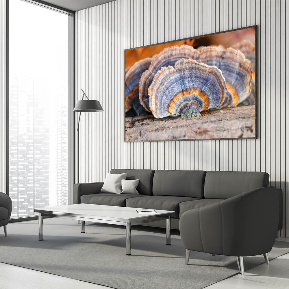 Add a touch of nature's intricate beauty to your space with this stunning close-up of vibrant mushroom patterns. This high-quality Pennsylvania nature art captures the detailed layers and colors of the mushroom’s natural form, featuring shades of blue, orange, and earthy tones that create an eye-catching and unique piece of wall decor. Perfect for those who appreciate the fine details of nature, this artwork will bring a fresh and organic feel to any room.
