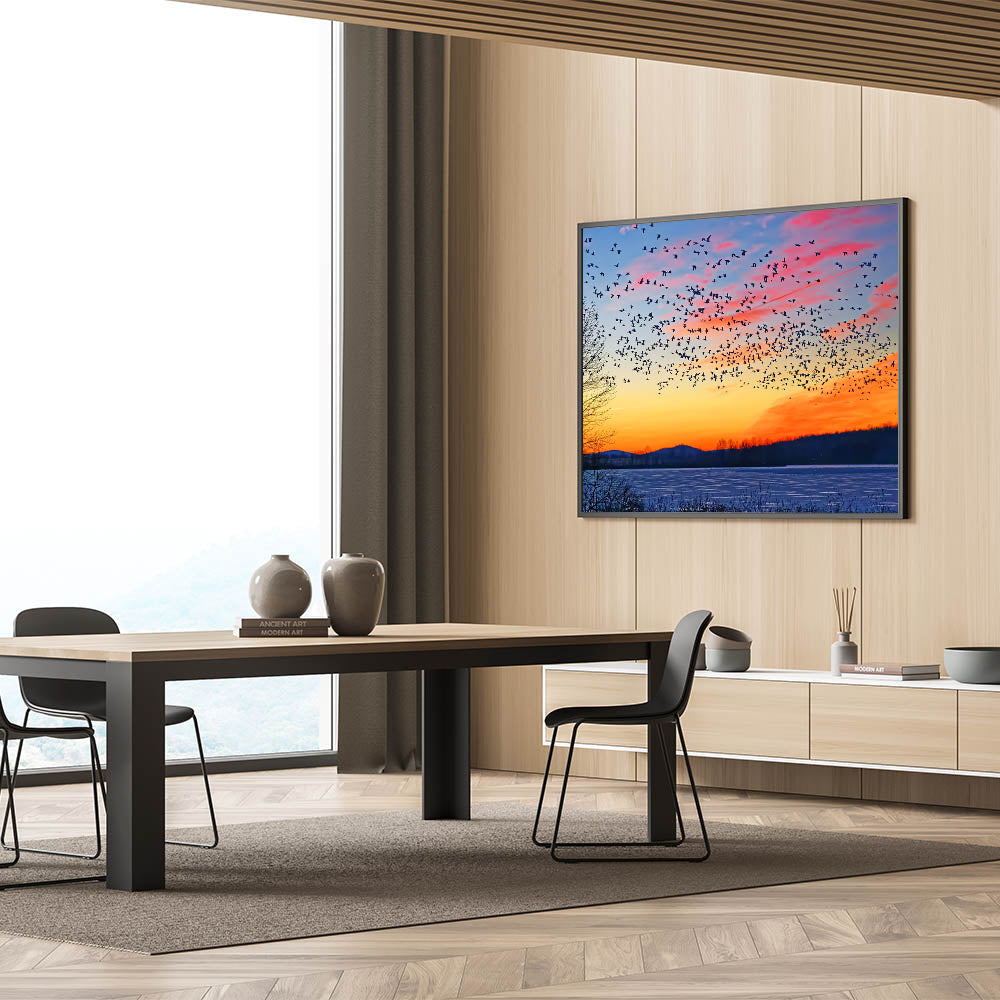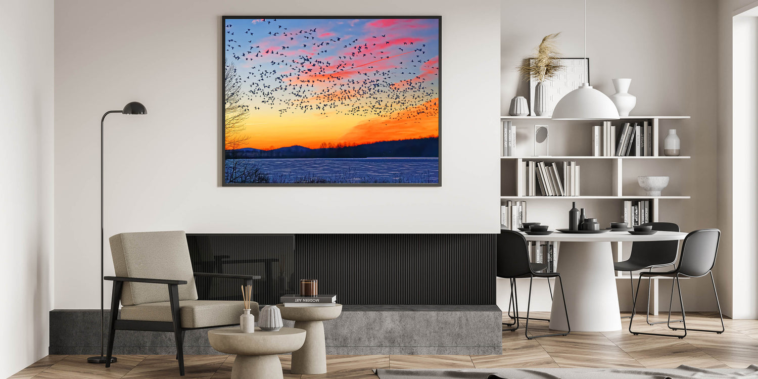 Add a touch of Pennsylvania’s scenic beauty to your living space with this handcrafted artwork. The dynamic movement of the birds and the warm colors of the sunset create a breathtaking visual experience that will transform any room into a nature-inspired retreat. Whether you choose canvas or framed prints, this unique wall art is perfect for nature lovers and those who appreciate stunning scenic views of Pennsylvania.