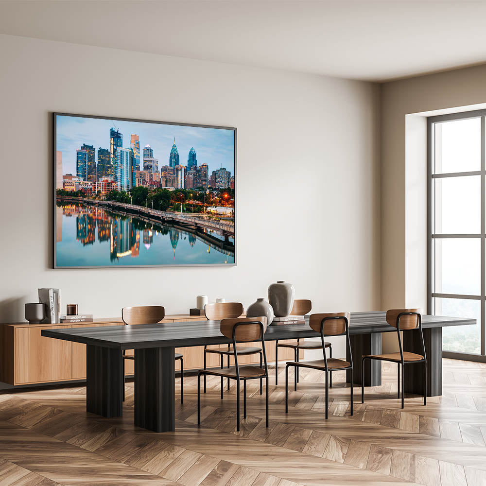 Capture the breathtaking beauty of the Philadelphia skyline with this vibrant piece of Pennsylvania photography. This stunning wall art features the iconic cityscape reflected perfectly in the water, creating a striking visual that showcases the architectural beauty and energy of the city. Whether you’re a resident or simply a fan of the city’s modern charm, this artwork is the perfect way to bring a piece of Philadelphia into your home.