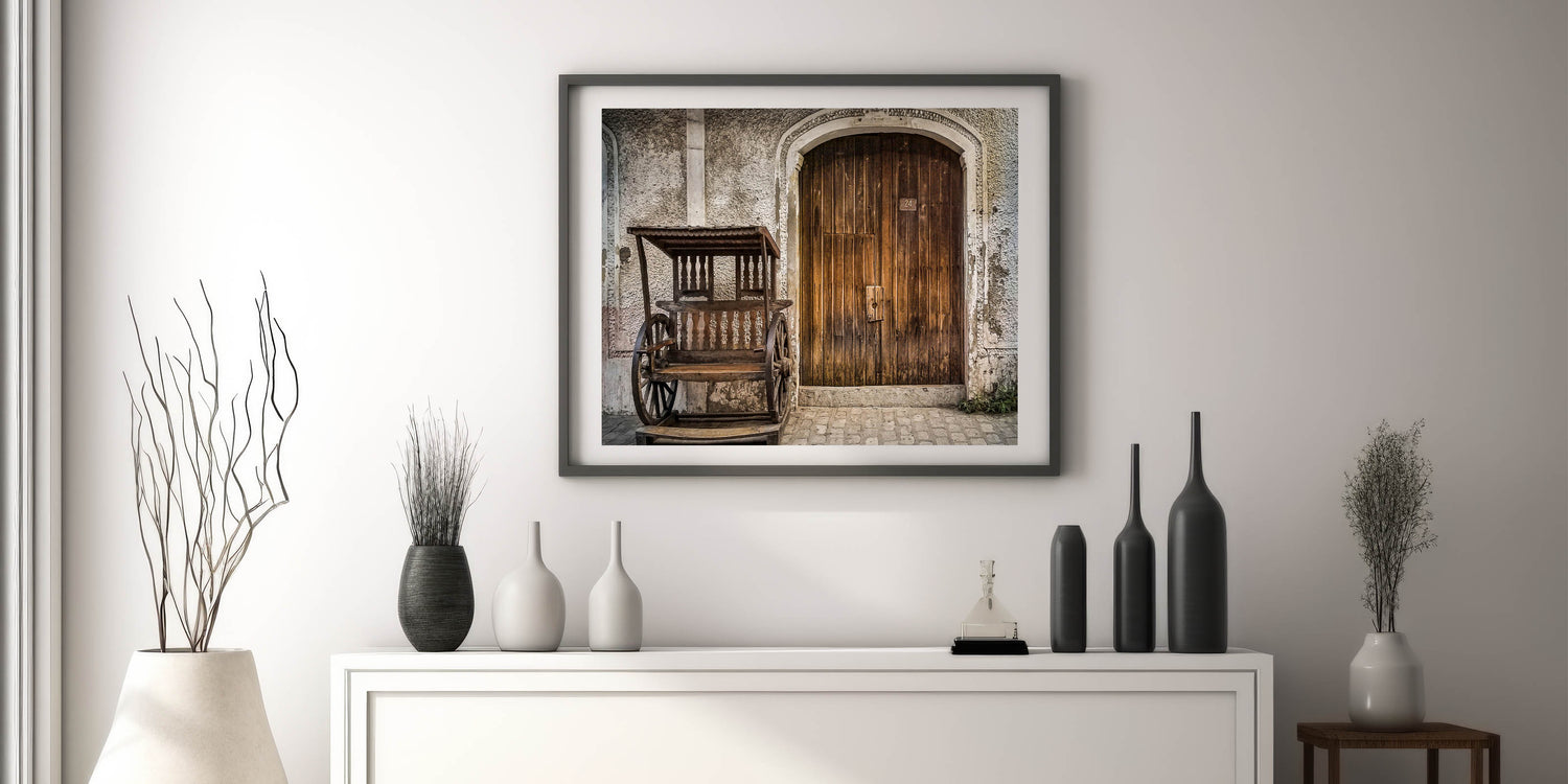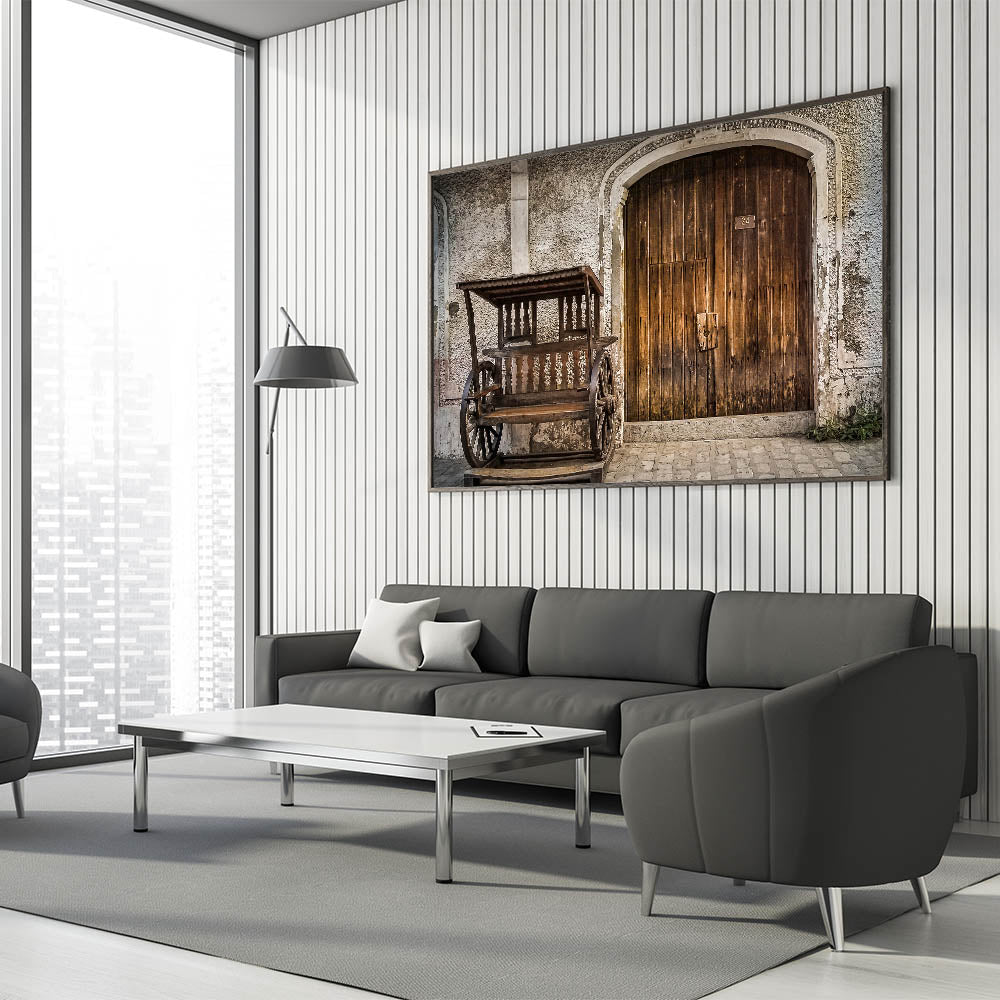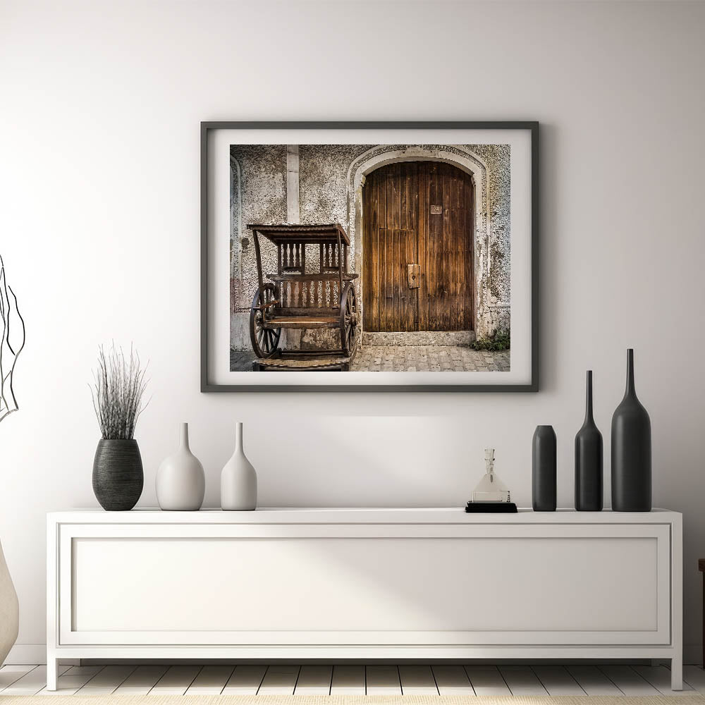 Step into the charm of traditional Filipino life with this stunning wall art featuring a rustic wooden cart and an old wooden door. The weathered textures and earthy tones evoke a sense of history and craftsmanship that reflects the cultural heritage of the Philippines. This handcrafted artwork perfectly captures the beauty of traditional Filipino architecture and rural life, making it ideal for those who appreciate Southeast Asian culture and vintage aesthetics.
