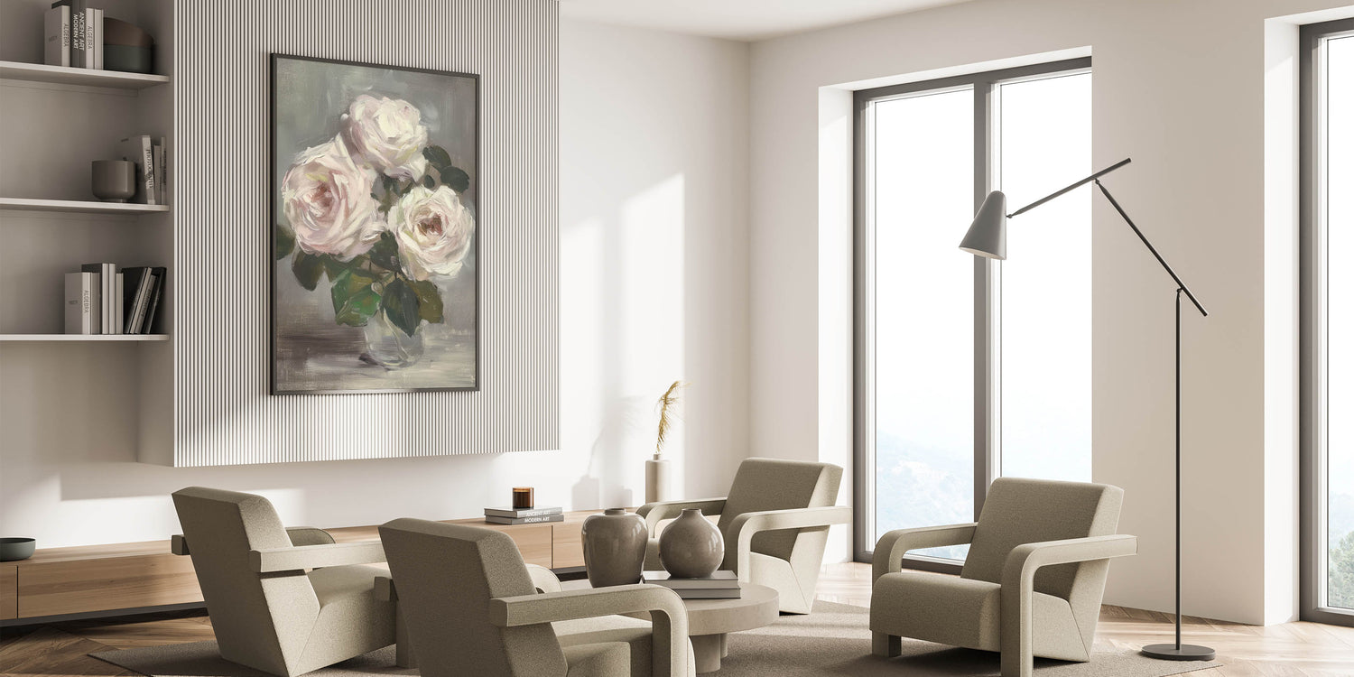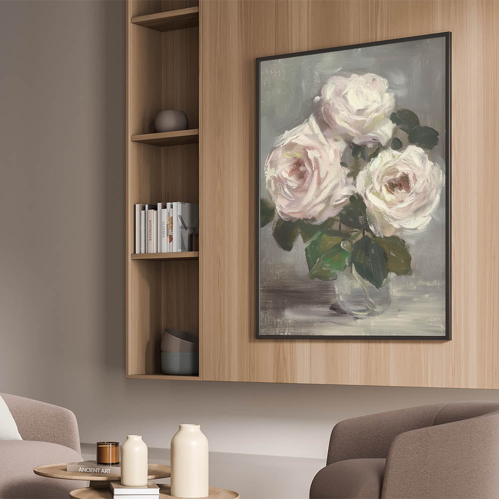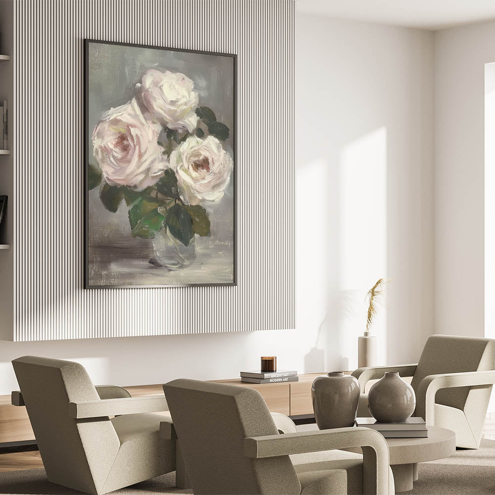 Bring timeless romance into your space with this Abstract Floral Canvas, featuring a delicate arrangement of soft pink roses against a muted gray background. The expressive brushstrokes and vibrant details highlight the natural beauty of the blooms, creating a sophisticated and serene ambiance.