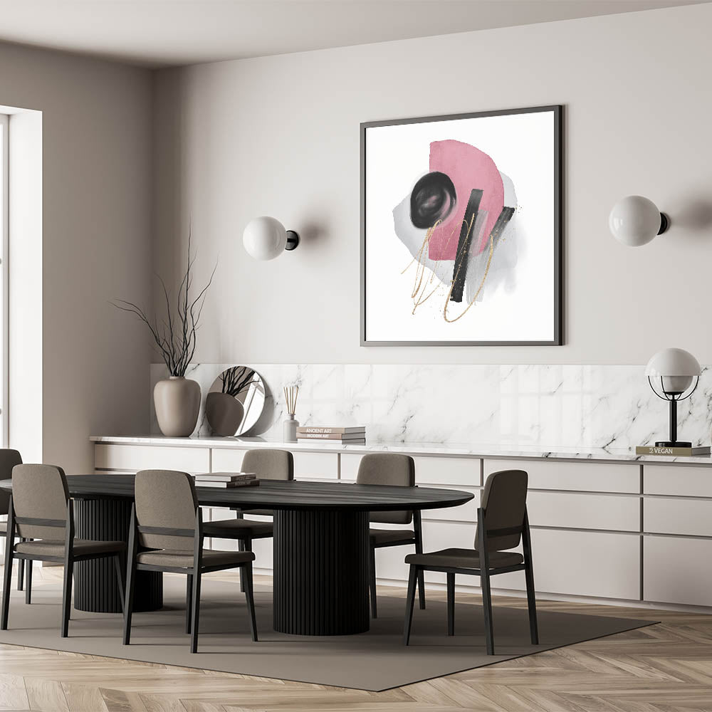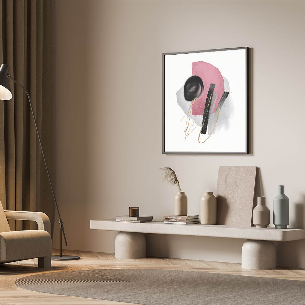 Abstract Geometric Framed Art – Pink, Black & Gold Minimalist Print