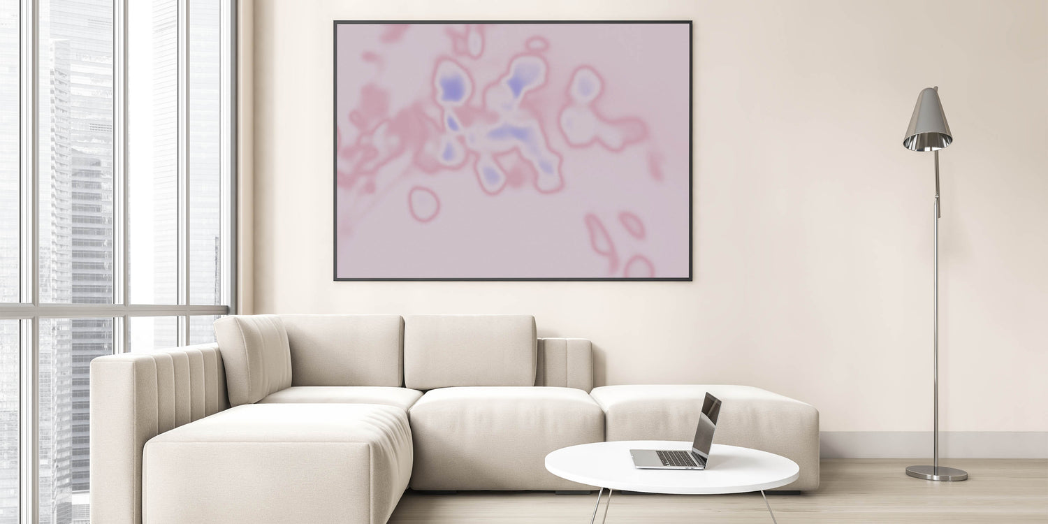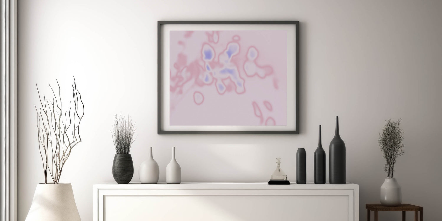 Elevate your space with this abstract pink and blue gradient artwork, designed to bring a sense of calm and creativity to any room. The soft pink background contrasts beautifully with highlights of blue, creating a captivating blend of colors. The delicate textures and smooth gradient transitions evoke feelings of peace and relaxation, making it an ideal piece for modern and minimalist interiors. Whether displayed in a living room, bedroom, or office, this artwork will add a touch of natural elegance to your décor.