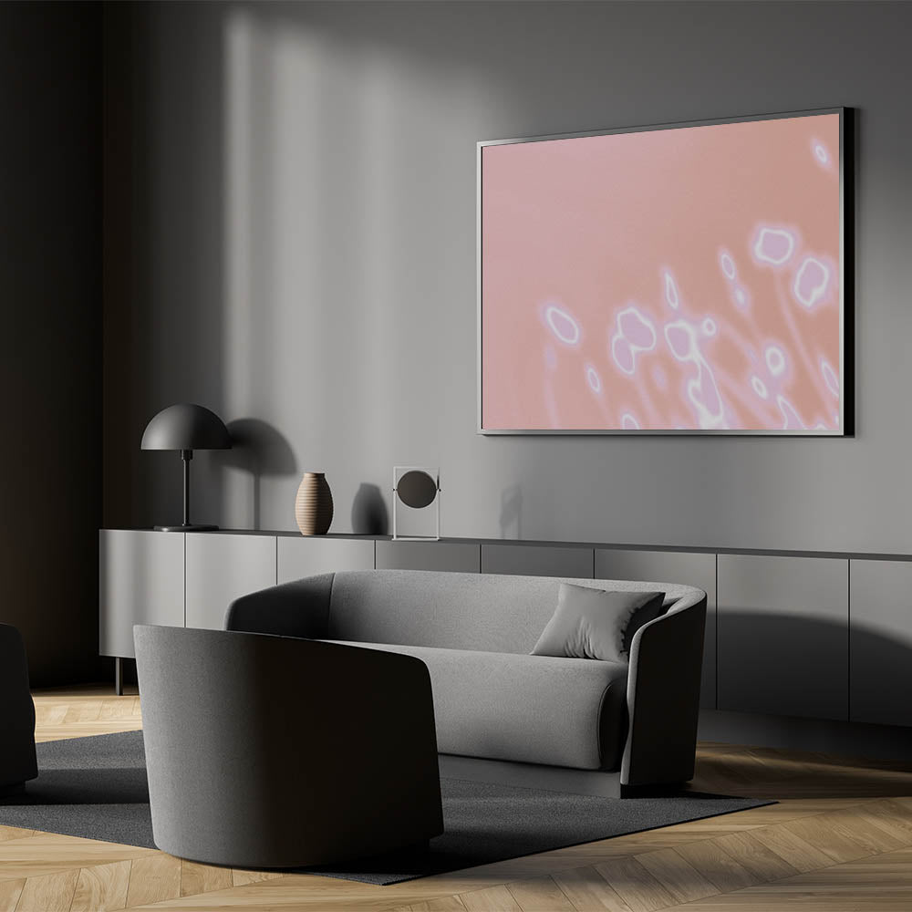 Add a touch of modern elegance to your space with this abstract pink gradient artwork. Featuring soft pink tones with delicate highlights of white, this artwork blends natural inspiration with a contemporary aesthetic. The smooth gradients and gentle textures evoke a sense of calm and relaxation, making it a perfect addition to any living room, bedroom, or office. The grainy gradient adds depth and dimension, giving the artwork a unique and sophisticated feel.