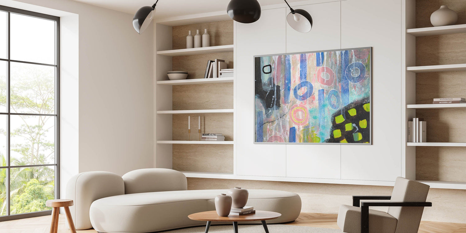 Add a vibrant and modern touch to your home with this large abstract wall art, where contemporary brushstrokes meet playful pastel accents. Whether used as a statement piece or paired with other artwork, this modern abstract painting brings personality and depth to any space.