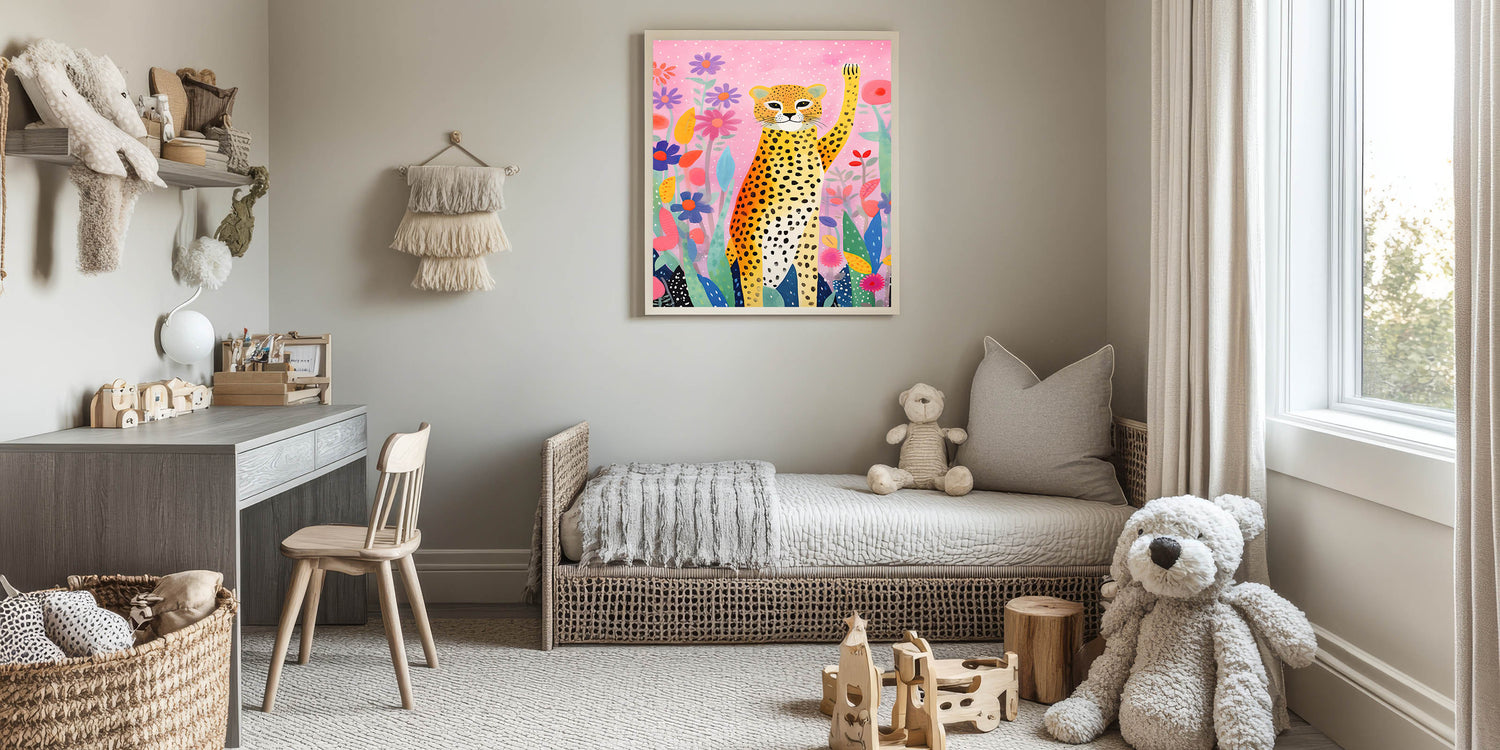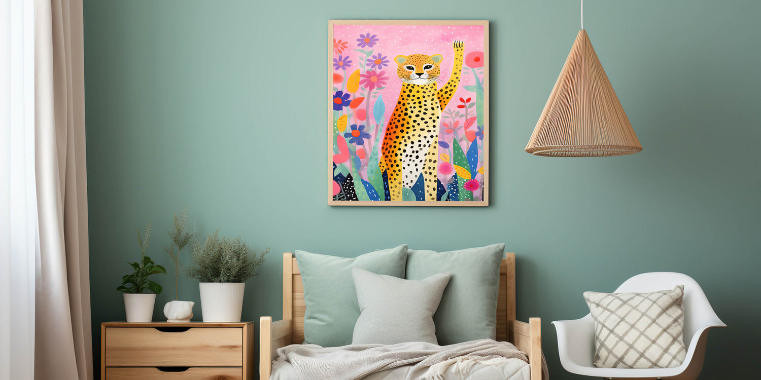 Acrylic Glass Art for Kids – Fun Leopard and Floral Print