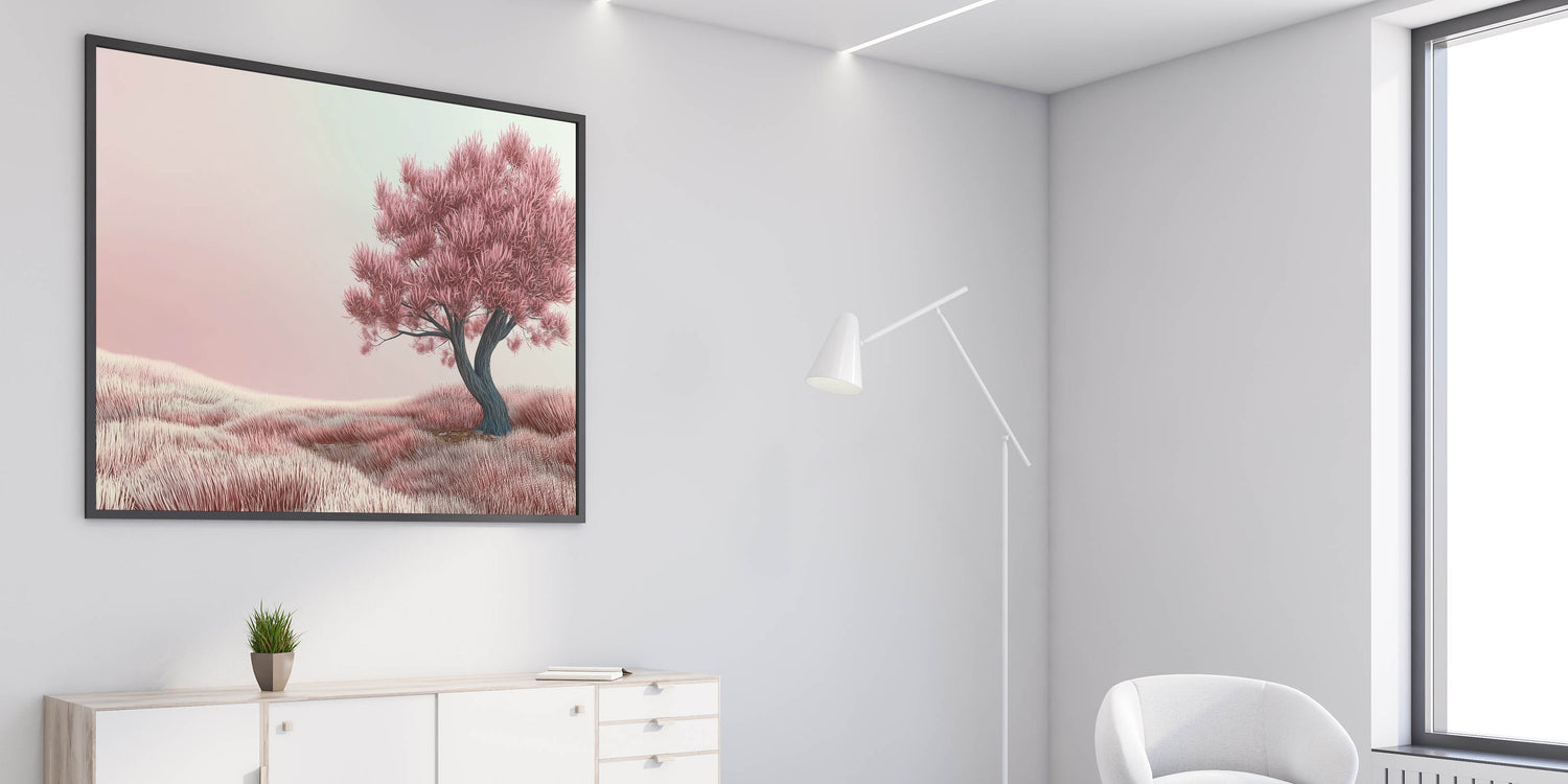 - Printed on high-quality materials: stretched canvas, acrylic glass, and rolled prints.