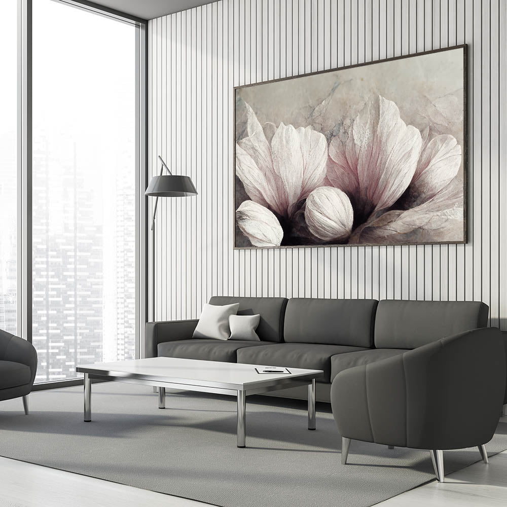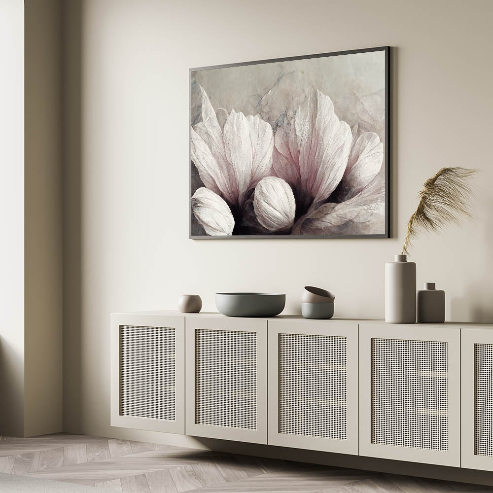Bring a sense of elegance and tranquility into your space with this stunning floral abstract wall art. Featuring delicate petals in soft blush pink and beige hues, this piece radiates sophistication and warmth. The detailed textures and gentle color transitions make it ideal for modern living room decor, adding a refined aesthetic to any space.