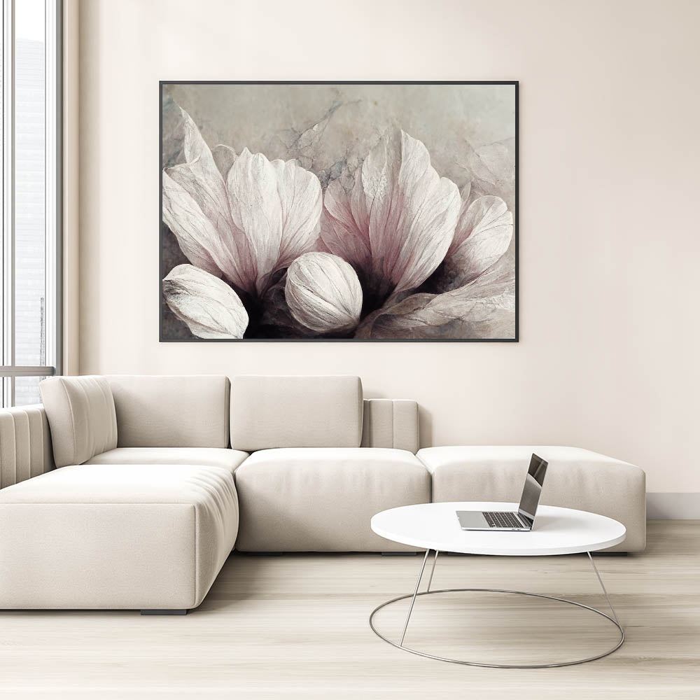 Blush Petal Serenity - Elegant Floral Living Room Wall Art