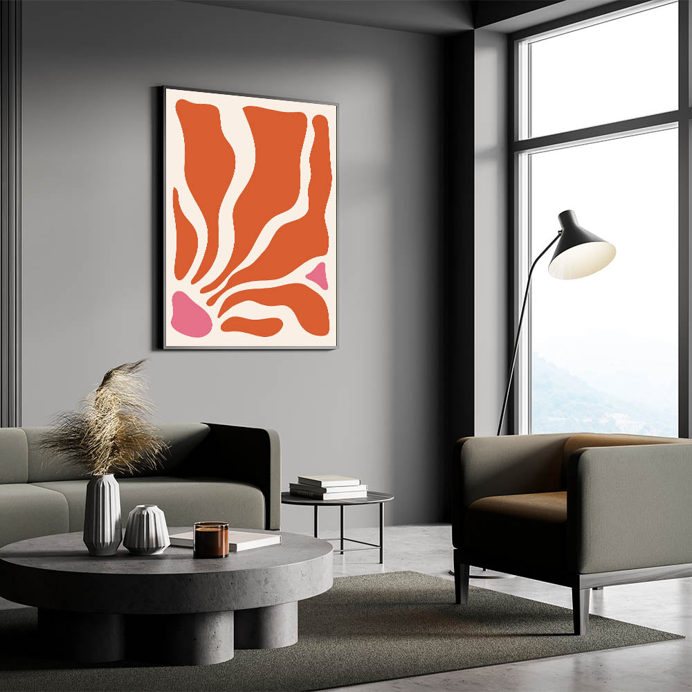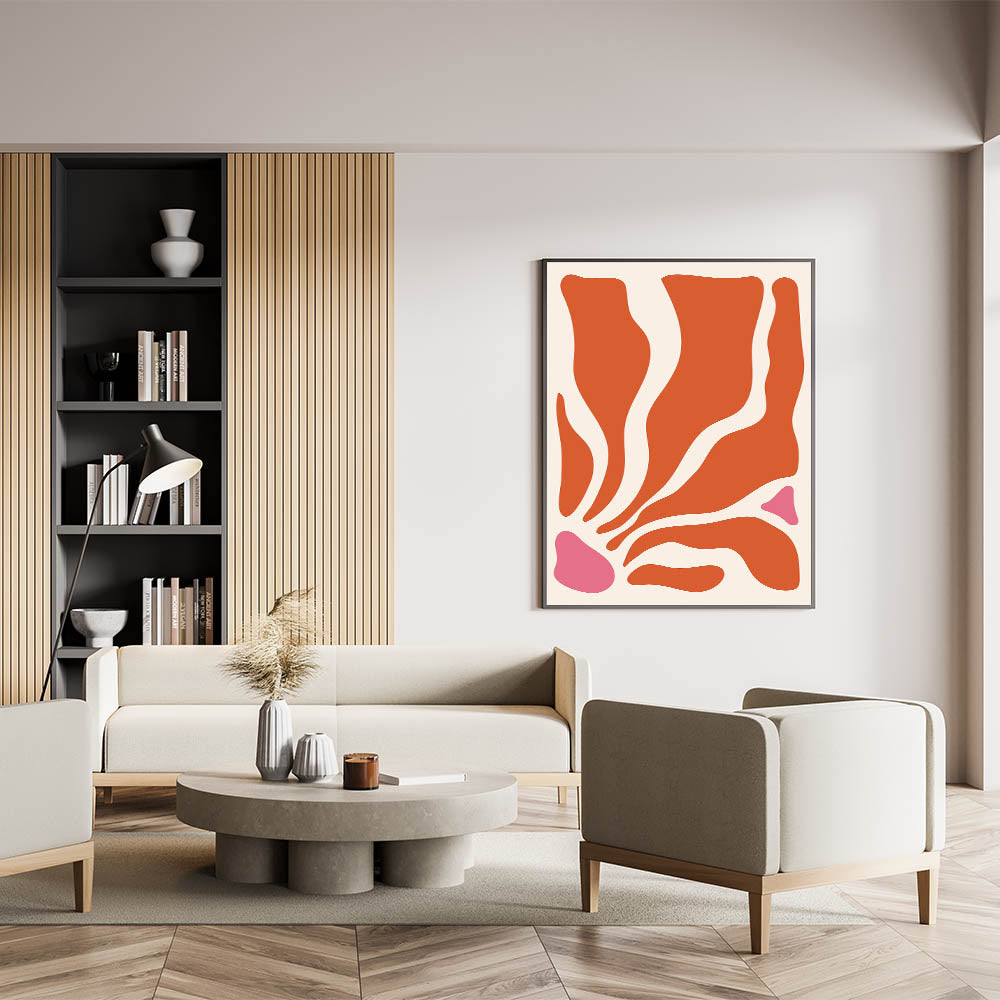 Add a pop of color to your home with this vibrant bohemian wall art, featuring bold orange and pink abstract shapes. The flowing organic design brings a sense of movement and energy, perfect for creating a dynamic focal point in any room. This boho chic canvas is ideal for modern interiors that embrace creativity and eclectic style.