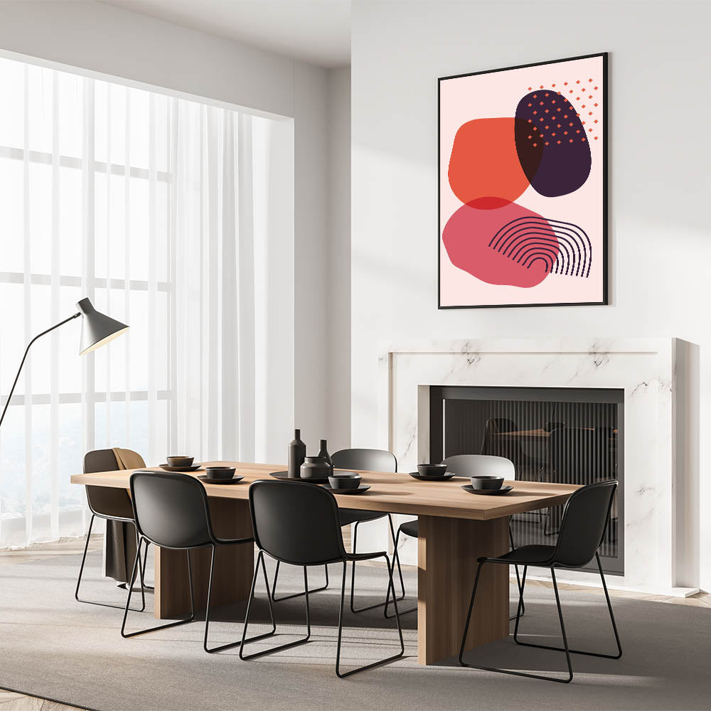 Add a bold statement to your home with this abstract bohemian wall art, featuring vibrant pink, red, and plum tones. The dynamic combination of geometric shapes and patterns creates a visually engaging and artistic design, perfect for modern and eclectic interiors. This boho chic canvas print is ideal for those looking to inject creativity and color into their living space.