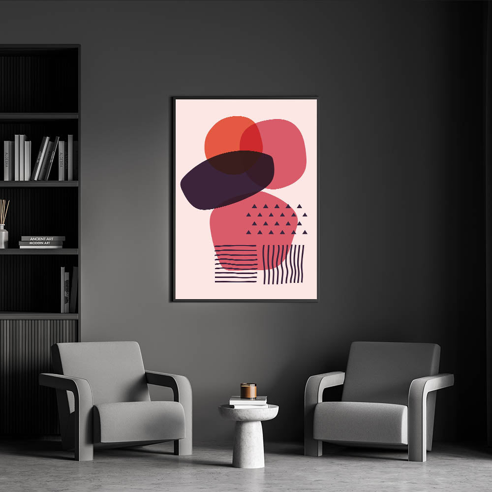 Enhance your home decor with this vibrant bohemian wall art, featuring bold abstract shapes in rich red, pink, and plum tones. The playful combination of organic forms and geometric patterns creates a striking and modern design, perfect for adding a unique focal point to any room. This boho chic canvas print is ideal for contemporary interiors that embrace creativity and color.