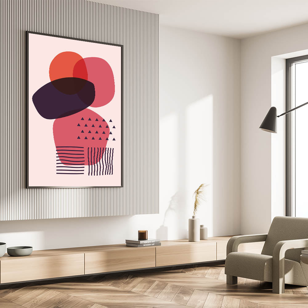 With its bold red, pink, and plum palette, this abstract boho wall art brings energy and elegance to any space. Whether you're looking to liven up a living room or add a creative accent to an office, this geometric canvas offers a perfect blend of modern style and artistic flair. Available in multiple formats, this piece complements a wide range of decor styles, from minimalist to boho chic.