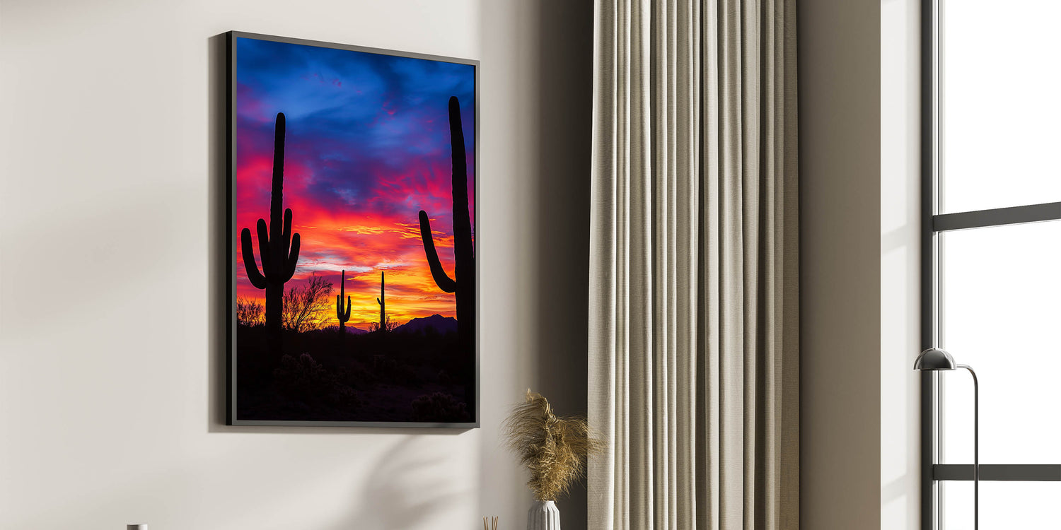 Cactus Wall Art - Vibrant Desert Sunset Landscape Canvas Prints