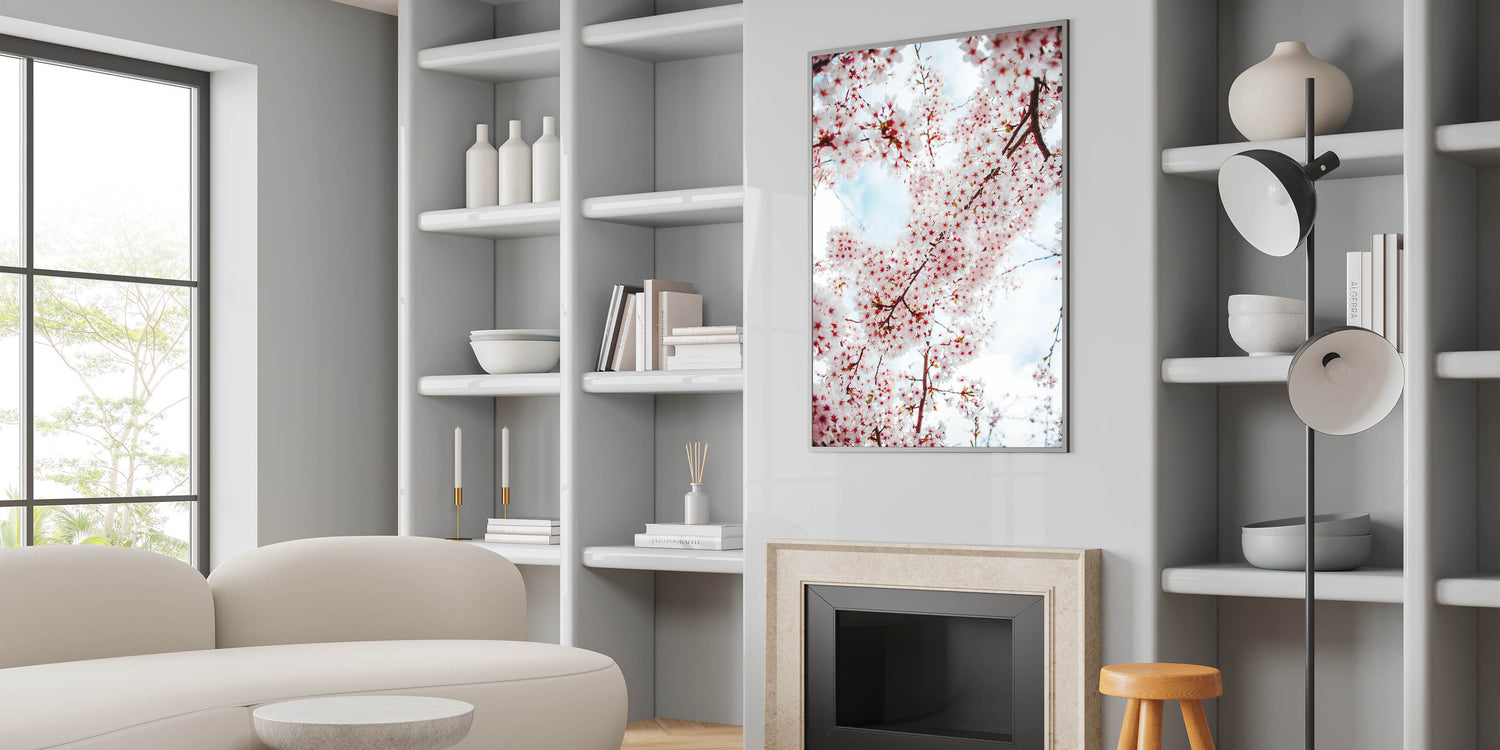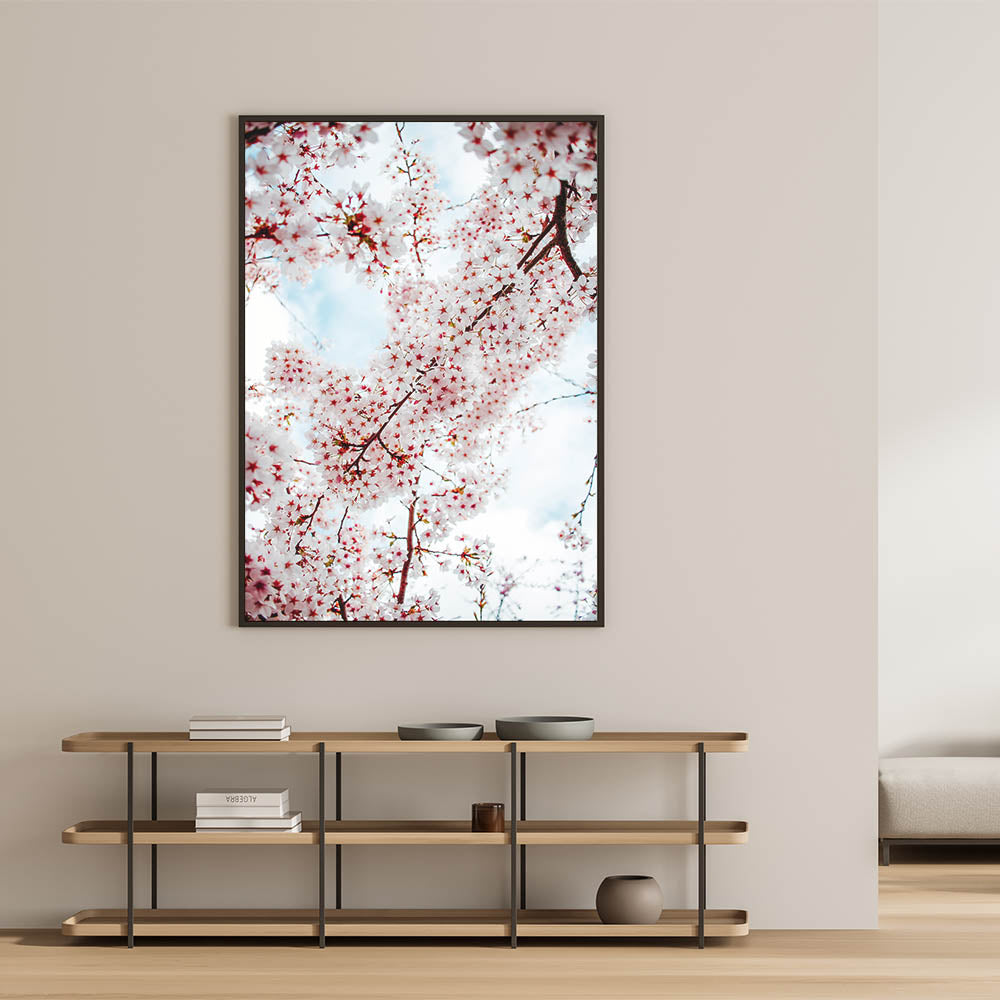 Capture the fleeting beauty of spring with this stunning cherry blossom wall art, featuring delicate white and pink blossoms set against a soft sky. The intricate details of the petals and branches create a breathtaking composition that brings a sense of renewal and tranquility to any space. This spring canvas art is perfect for floral and nature lovers who appreciate the elegance of blooming sakura trees.