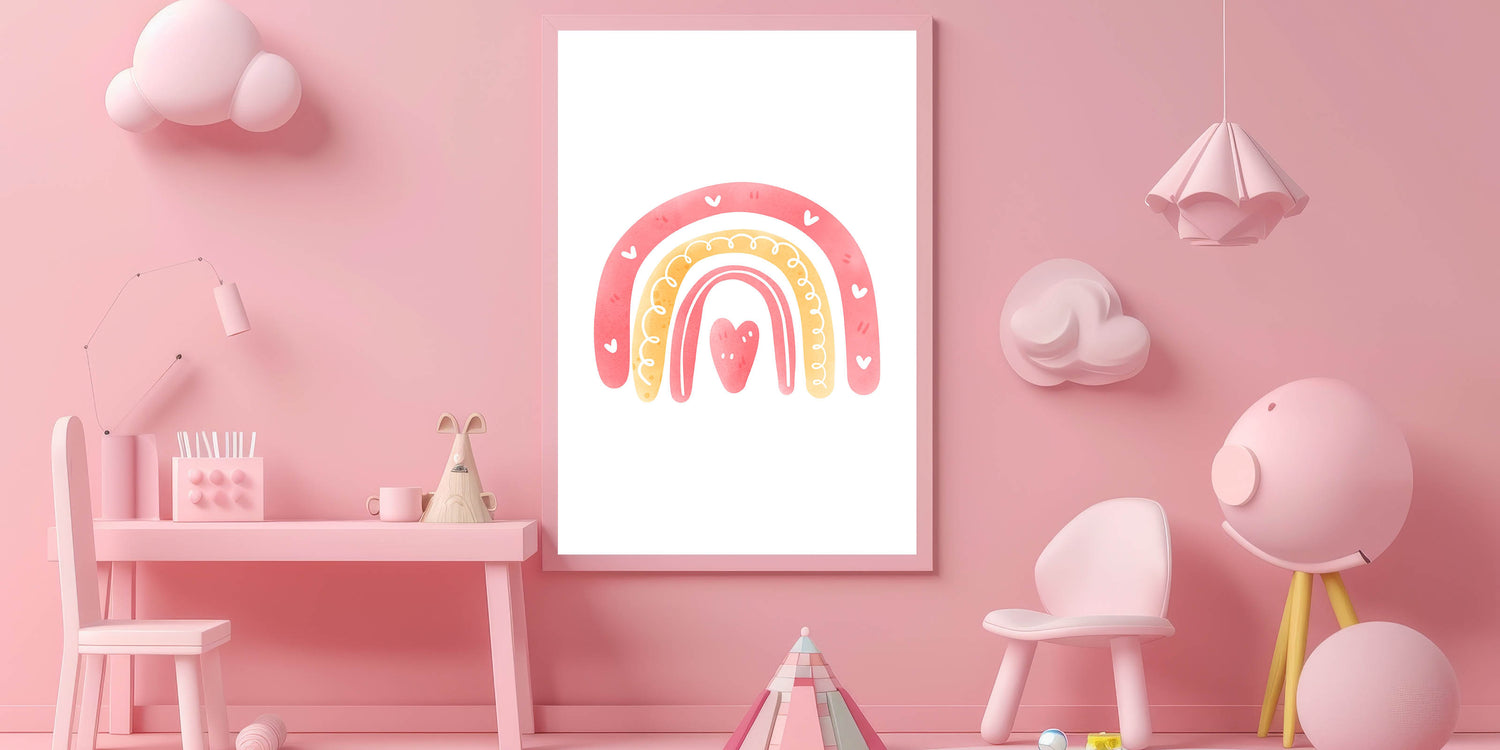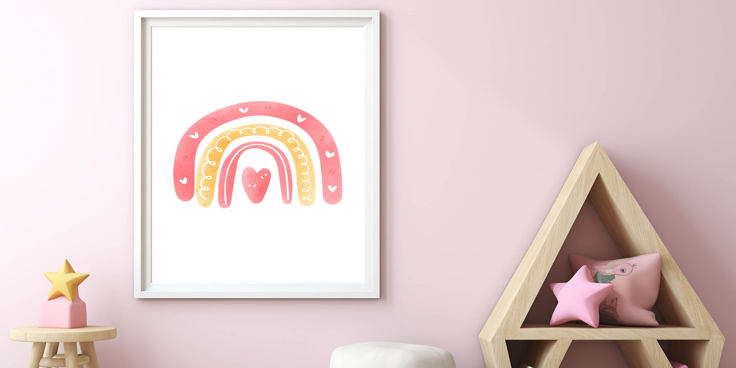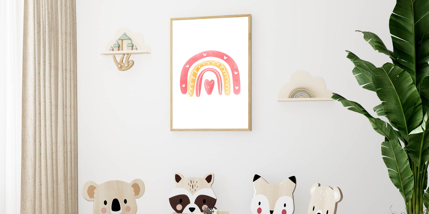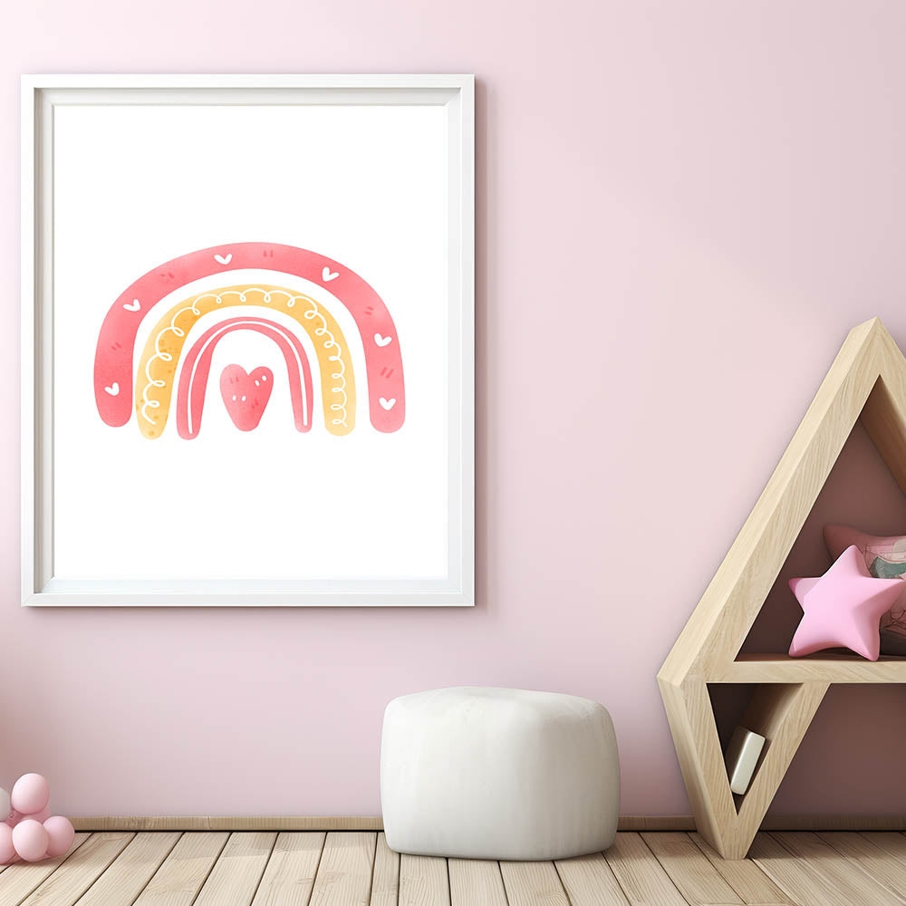 Create a joyful and cozy atmosphere in your little one’s space with this high-quality, heart rainbow art print.