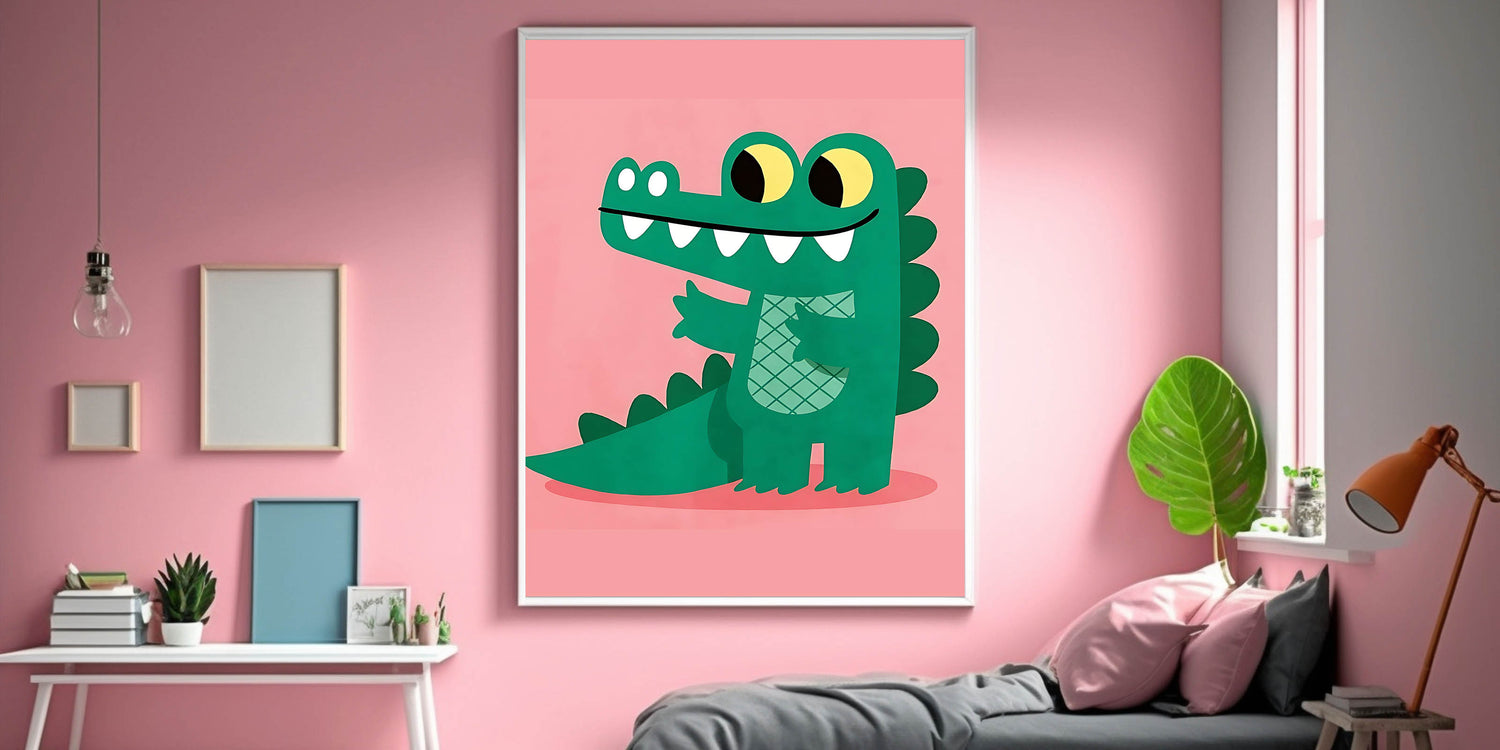 Children’s Wall Decor – Playful Crocodile Illustration for Kids