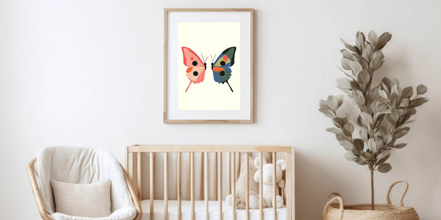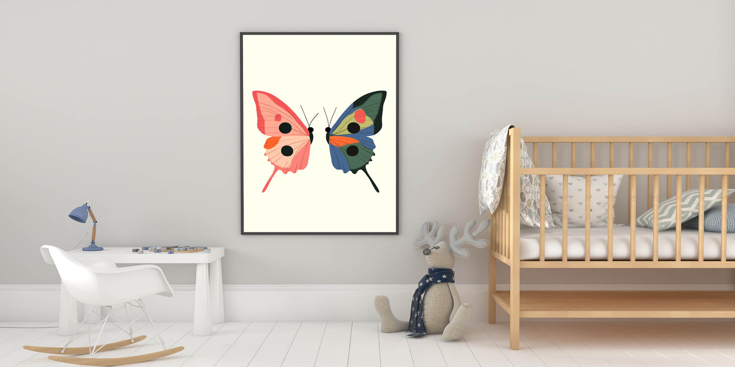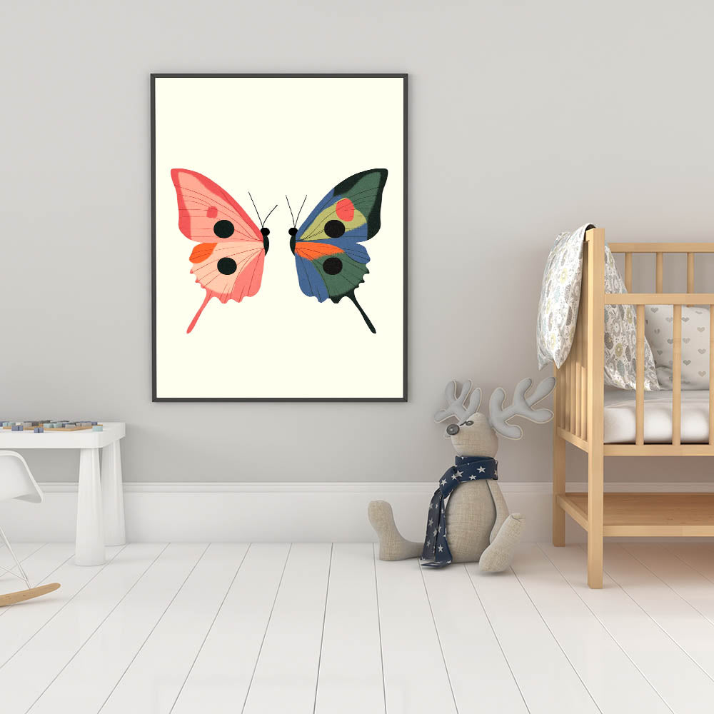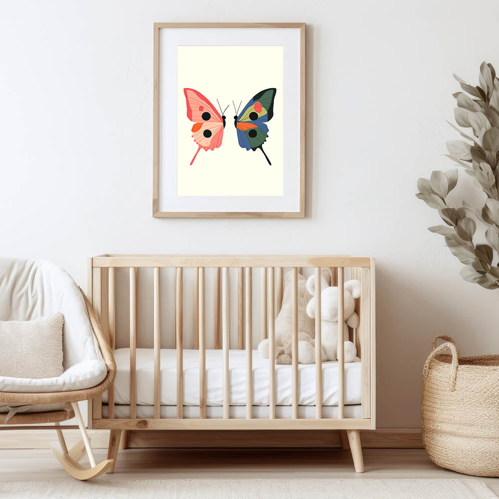 This framed nursery art is an ideal addition to modern nurseries, playrooms, or children’s bedrooms. Whether printed as acrylic nursery art or a framed print, this butterfly design will bring color and joy to your little one's space.