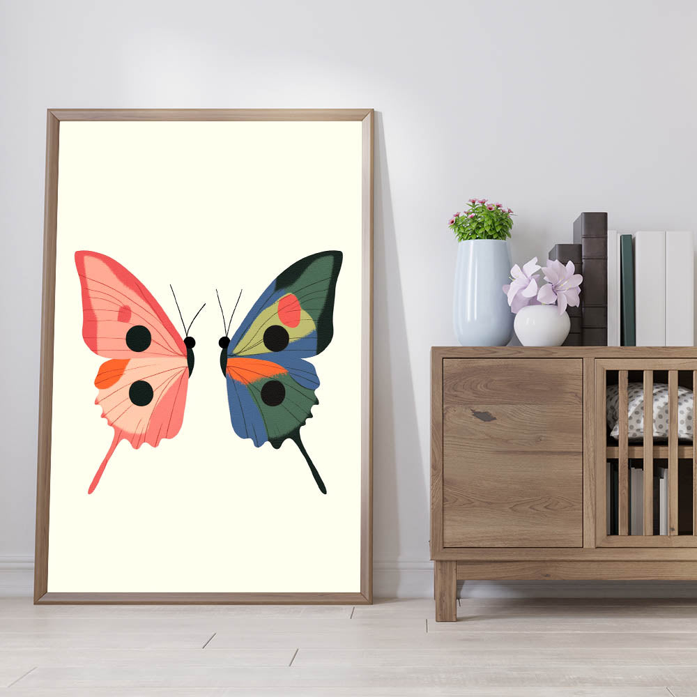 Brighten up your child's space with this colorful butterfly nursery wall art, designed to bring a vibrant and whimsical touch to baby room decor. Featuring a beautifully artistic butterfly with asymmetrical wings in pink, orange, blue, and green, this unique design adds creativity and charm to any children’s wall art collection.