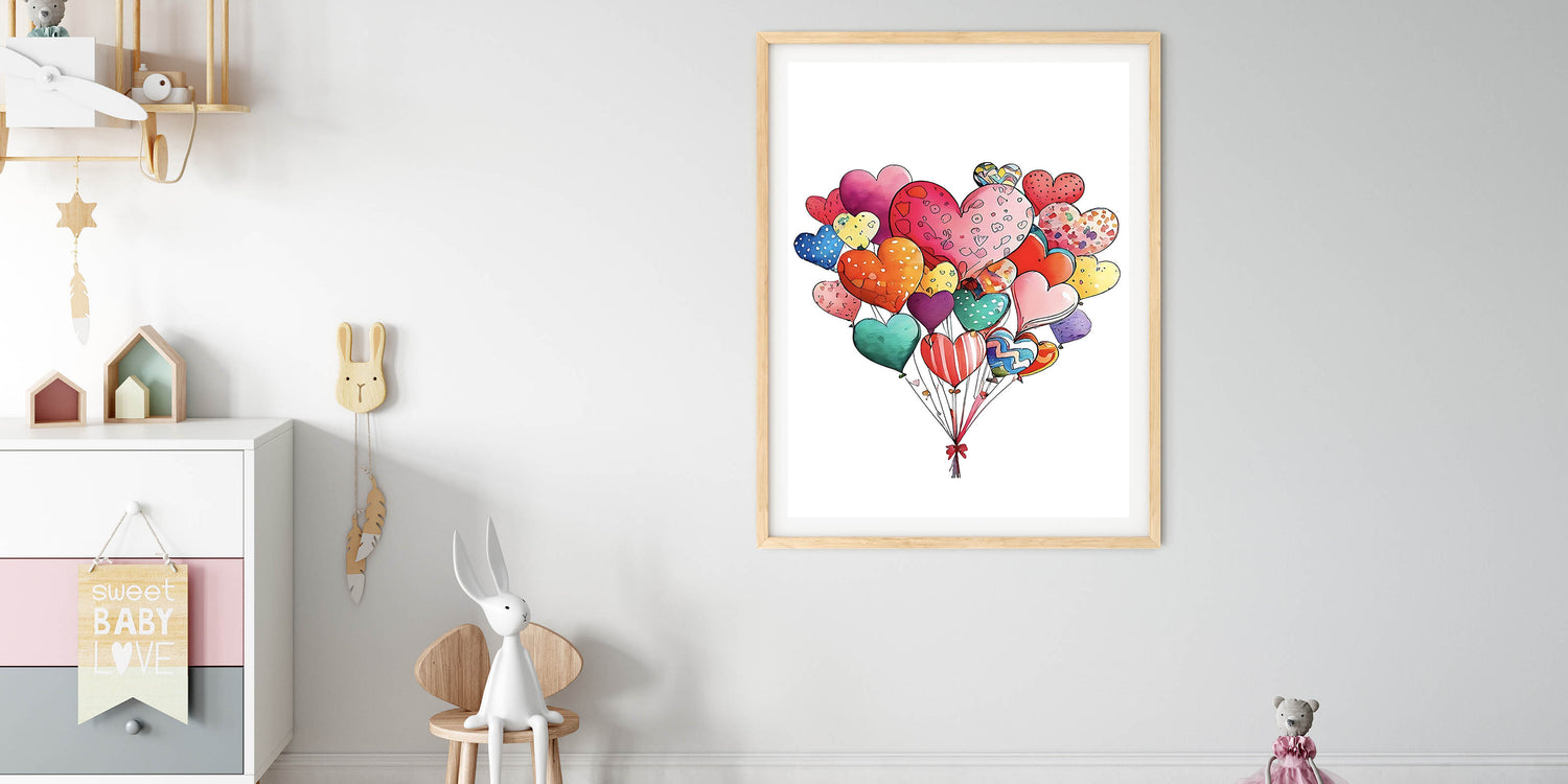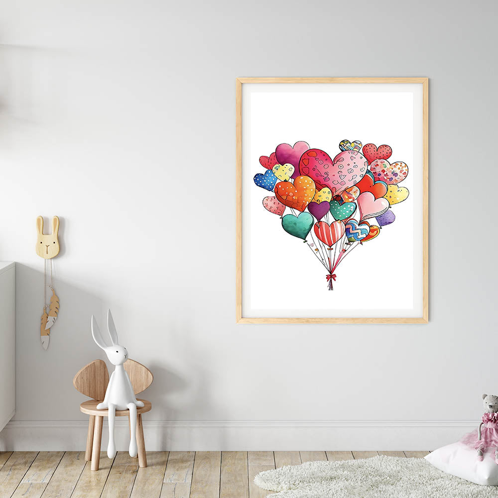 Colorful Heart Balloon Wall Art - Kids Room and Nursery Print