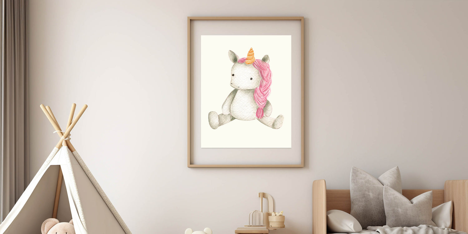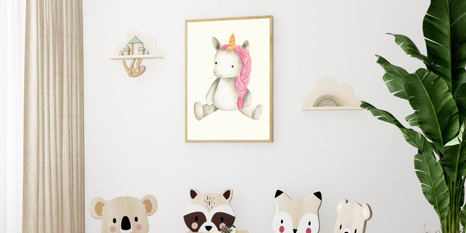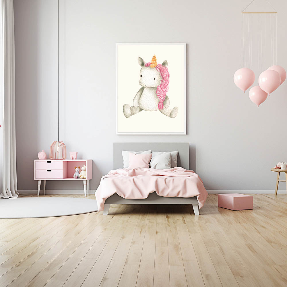 Cute Plush Unicorn Art for Kids - Nursery Wall Art