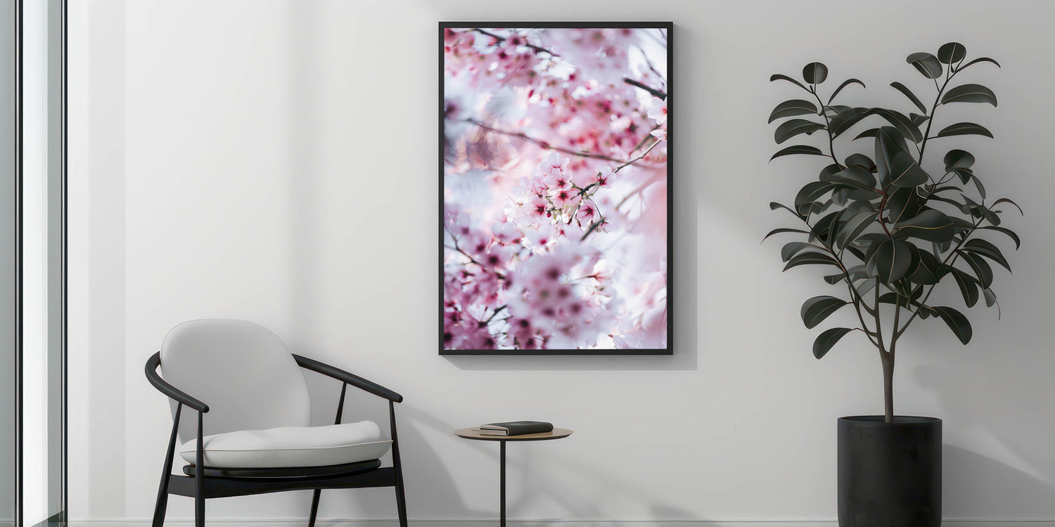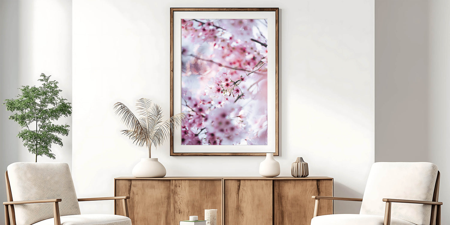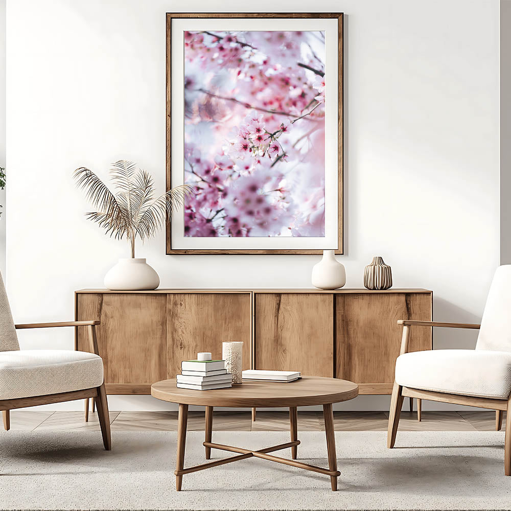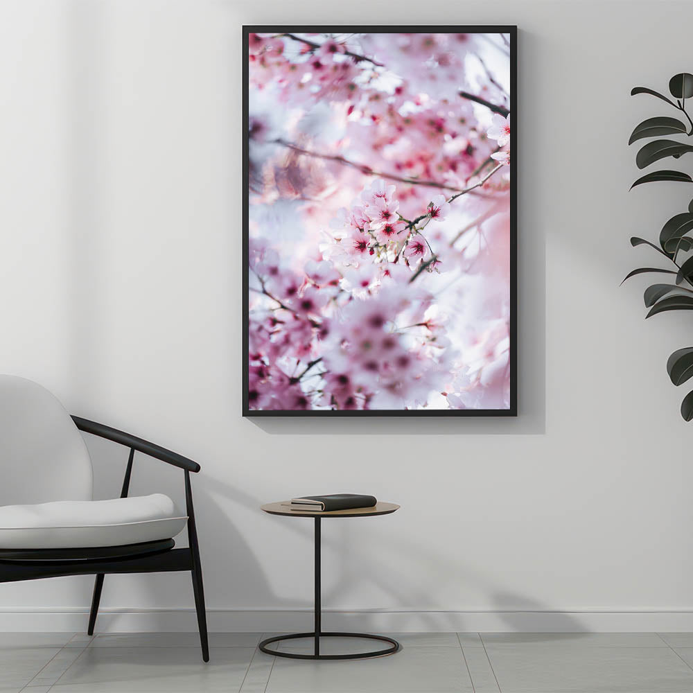 Bring the soft beauty of spring into your home with this stunning Spring Wall Art, featuring delicate cherry blossoms in full bloom. The soft pink petals contrast beautifully against the dreamy, blurred background, creating a sense of depth and movement. This Floral Wall Art captures the fleeting elegance of cherry blossoms, a symbol of renewal and grace, making it a perfect choice for those who appreciate nature-inspired decor.