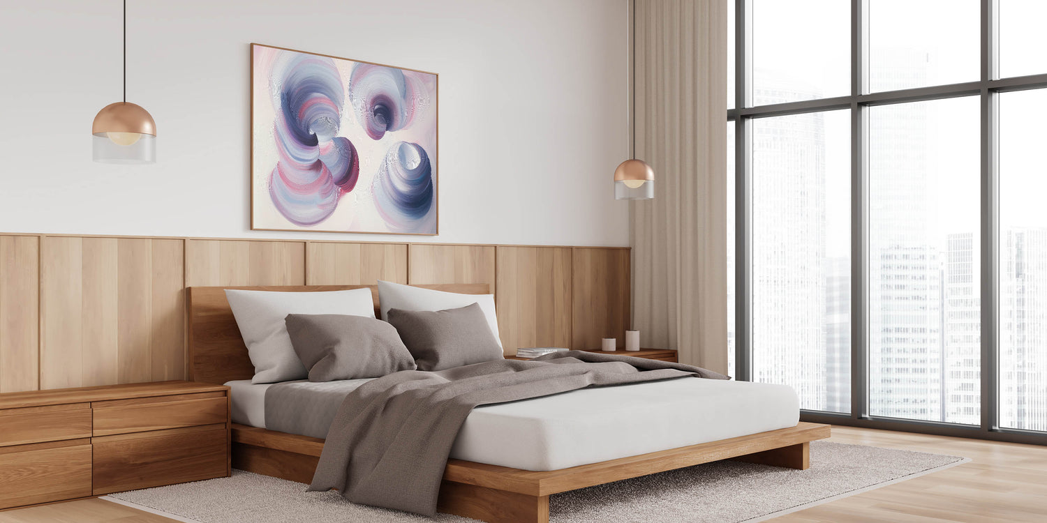 This modern art piece for bedroom decor is perfect for those seeking a calming, dreamy ambiance in their living space. Whether you choose framed bedroom art, canvas prints for bedroom, or acrylic bedroom wall art, this design adds a refined and tranquil elegance to your home. Order now and bring a touch of serenity to your bedroom!