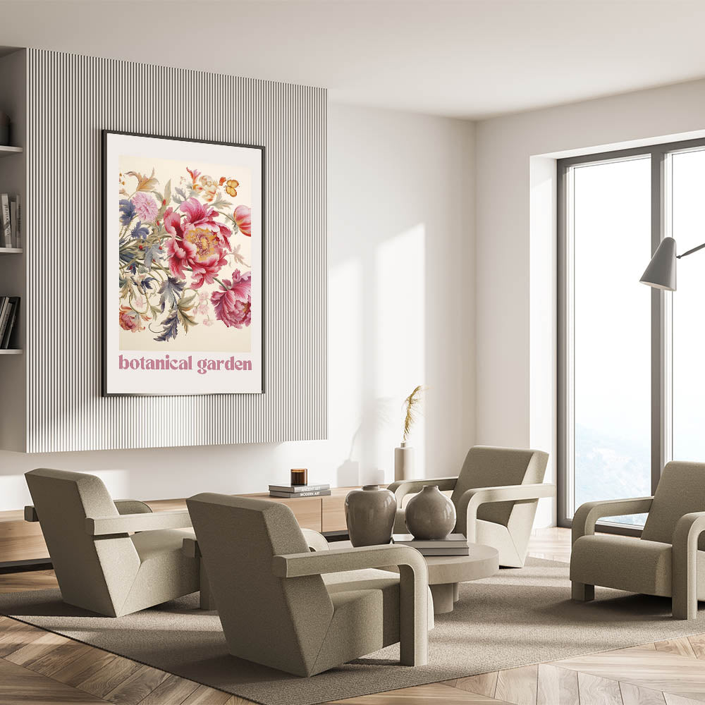 This electric wall art showcases a beautiful botanical garden scene featuring vibrant floral elements in rich pinks, yellows, and soft purples. The intricate details and delicate brushstrokes give the artwork a sense of elegance and movement, making it perfect for contemporary interiors. The lively color palette and realistic floral depiction bring a touch of nature into any space, while maintaining a modern electric-themed aesthetic.