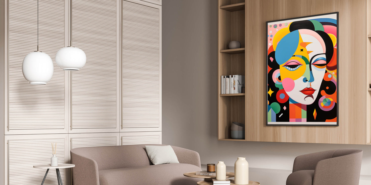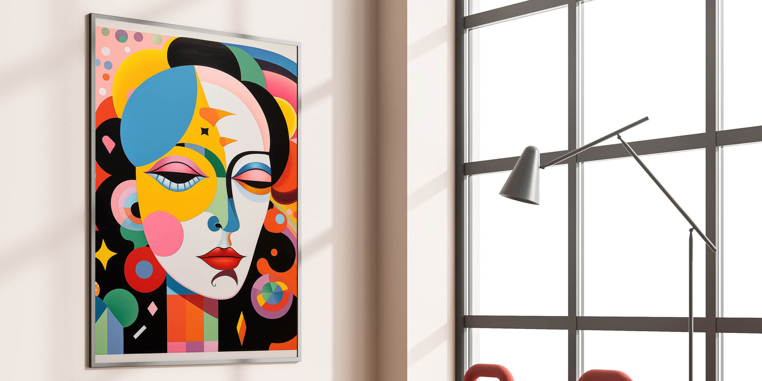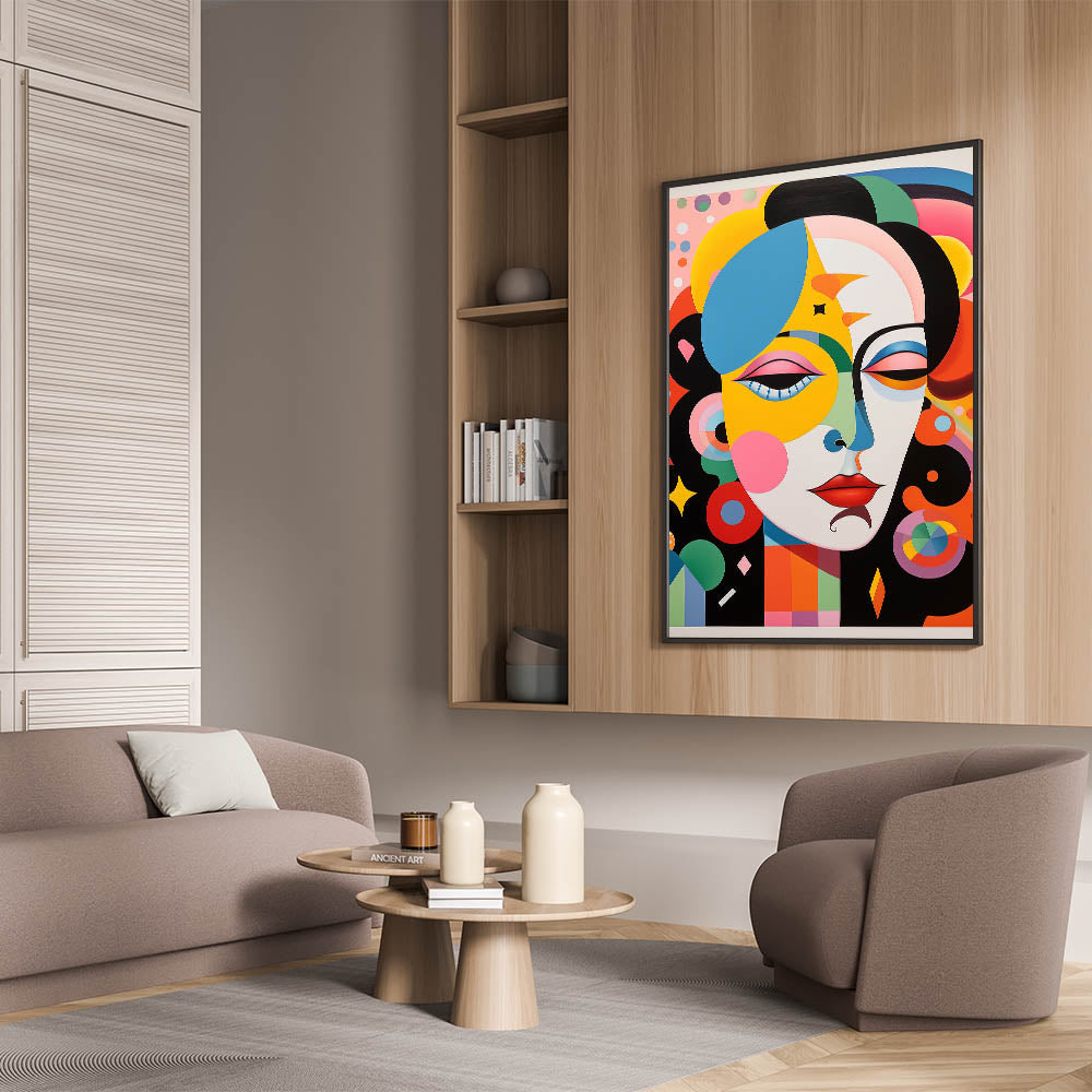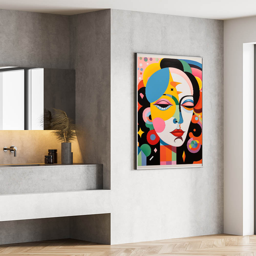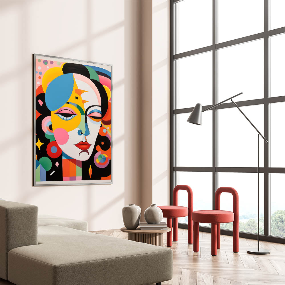 Electric Wall Art: Vibrant Abstract Face Design - Modern Electric Decor